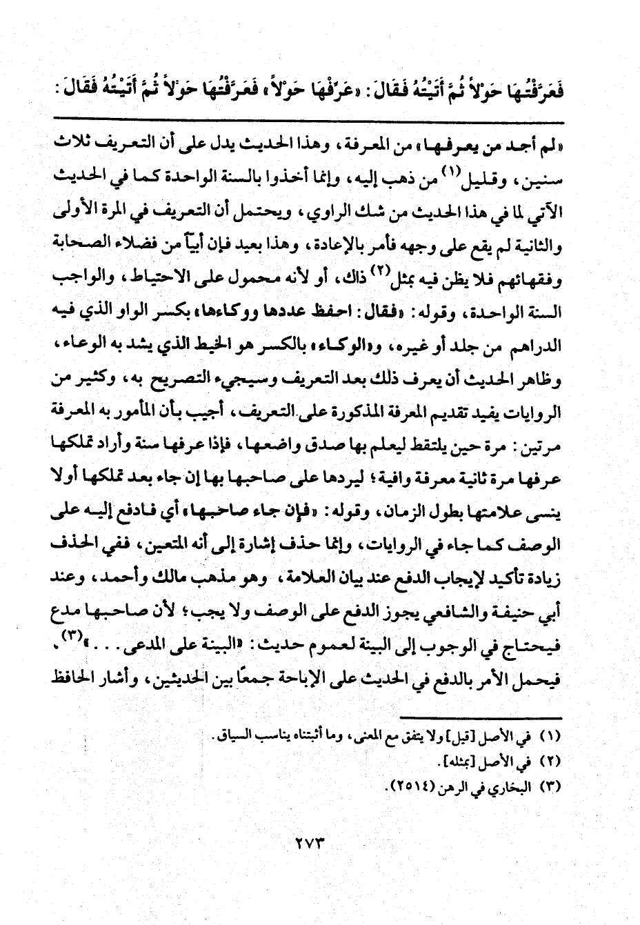 فَعَرَّفْتُهَا حَوْلًا، ثُمَّ أَتَيْتُهُ فَقَالَ: «عَرِّفْهَا حَوْلًا»، فَعَرَّفْتُهَا حَوْلًا، ثُمَّ أَتَيْتُهُ، فَقَالَ:
