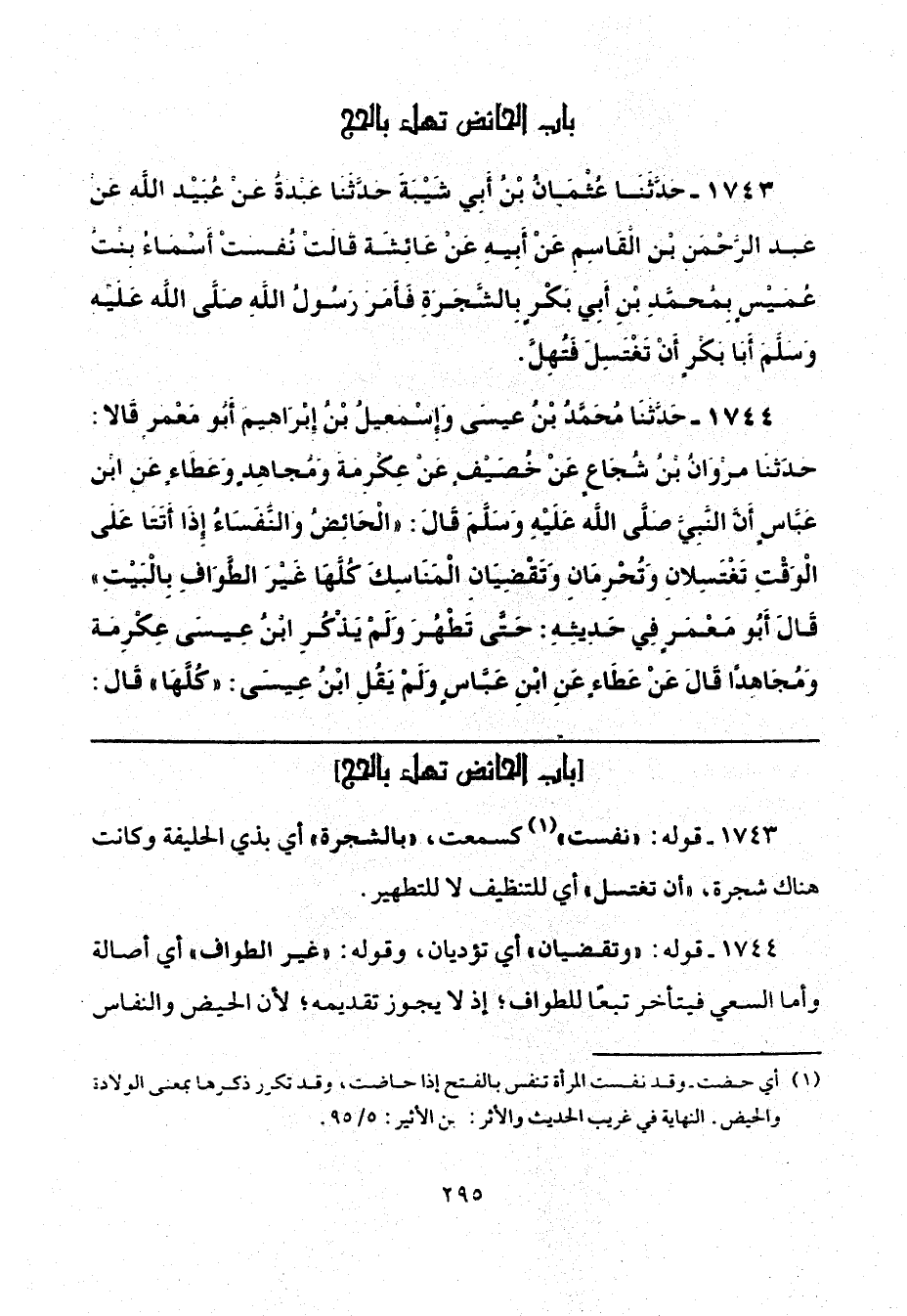 (¬1) أي حضت -وقد نفست المرأة تنفس بالفتح إذا حاضت، وقد تكرر ذكرها بمعنى الولادة والحيض. النهاية في غريب الحديث والأثر لابن الأثير: 5/ 95.