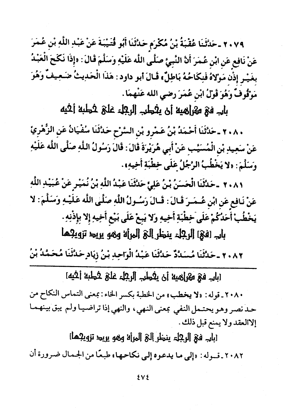 2080 - حَدَّثَنَا أَحْمَدُ بْنُ عَمْرِو بْنِ السَّرْحِ، حَدَّثَنَا سُفْيَانُ، عَنِ الزُّهْرِيِّ، عَنْ سَعِيدِ بْنِ الْمُسَيَّبِ، عَنْ أَبِي هُرَيْرَةَ، قَالَ: قَالَ رَسُولُ اللَّهِ صَلَّى اللهُ عَلَيْهِ وَسَلَّمَ: «لَا يَخْطُبُ الرَّجُلُ عَلَى خِطْبَةِ أَخِيهِ».