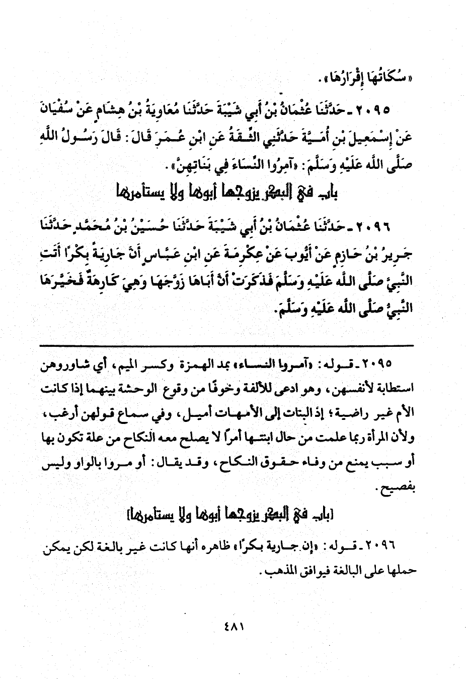 2096 - حَدَّثَنَا عُثْمَانُ بْنُ أَبِي شَيْبَةَ، حَدَّثَنَا حُسَيْنُ بْنُ مُحَمَّدٍ، حَدَّثَنَا جَرِيرُ بْنُ حَازِمٍ، عَنْ أَيُّوبَ، عَنْ عِكْرِمَةَ، عَنِ ابْنِ عَبَّاسٍ، أَنَّ جَارِيَةً بِكْرًا أَتَتِ النَّبِيَّ صَلَّى اللهُ عَلَيْهِ وَسَلَّمَ فَذَكَرَتْ «أَنَّ أَبَاهَا زَوَّجَهَا وَهِيَ كَارِهَةٌ، فَخَيَّرَهَا النَّبِيُّ صَلَّى اللهُ عَلَيْهِ وَسَلَّمَ».
