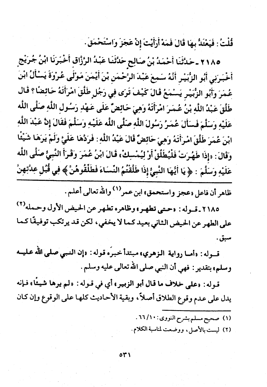 2185 - قوله: "حتى تطهر" وظاهره تطهر عن الحيض الأول وحمله (¬2) على الطهر عن الحيض الثاني بعيد كما لا يخفي، لكن قد يرتكب توفيقًا كما سبق.