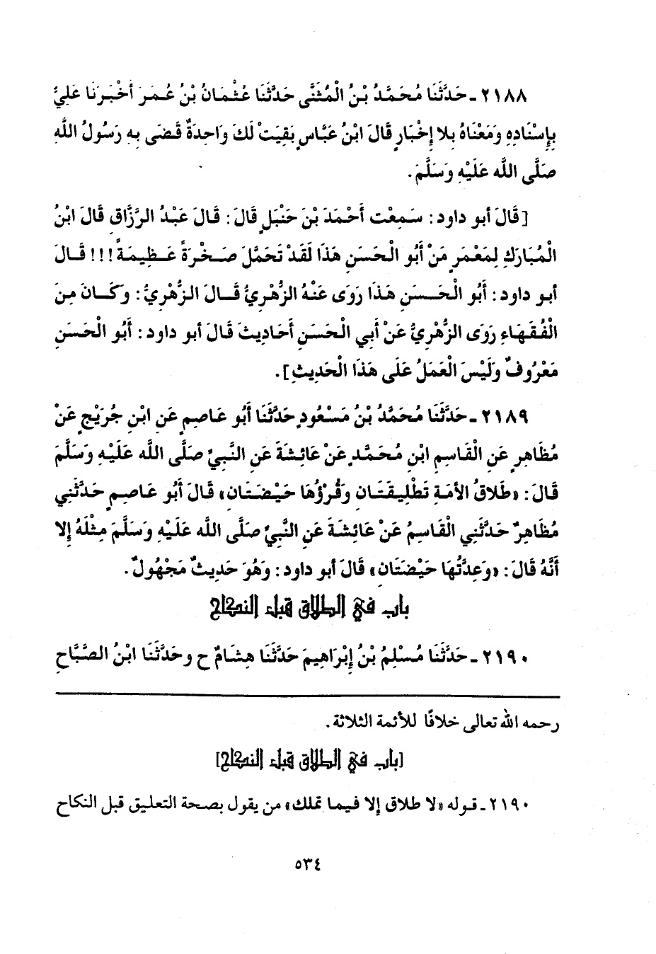 2188 - حَدَّثَنَا مُحَمَّدُ بْنُ الْمُثَنَّى، حَدَّثَنَا عُثْمَانُ بْنُ عُمَرَ، أَخْبَرَنَا عَلِيٌّ بِإِسْنَادِهِ وَمَعْنَاهُ بِلَا إِخْبَارٍ، قَالَ ابْنُ عَبَّاسٍ: «بَقِيَتْ لَكَ وَاحِدَةٌ قَضَى بِهِ رَسُولُ اللَّهِ صَلَّى اللهُ عَلَيْهِ وَسَلَّمَ»، قَالَ أَبُو دَاوُدَ: سَمِعْت أَحْمَدَ بْنَ حَنْبَلٍ قَالَ: قَالَ عَبْدُ الرَّزَّاقِ: قَالَ ابْنُ الْمُبَارَكِ، لِمَعْمَرٍ: «مَنْ أَبُو الْحَسَنِ هَذَا؟ لَقَدْ تَحَمَّلَ صَخْرَةً عَظِيمَةً»، قَالَ أَبُو دَاوُدَ: «أَبُو الْحَسَنِ هَذَا رَوَى، عَنْهُ الزُّهْرِيُّ»، قَالَ الزُّهْرِيُّ: «وَكَانَ مِنَ الْفُقَهَاءِ رَوَى الزُّهْرِيُّ، عَنْ أَبِي الْحَسَنِ أَحَادِيثَ»، قَالَ أَبُو دَاوُدَ: «أَبُو الْحَسَنِ مَعْرُوفٌ، وَلَيْسَ الْعَمَلُ عَلَى هَذَا الْحَدِيثِ».