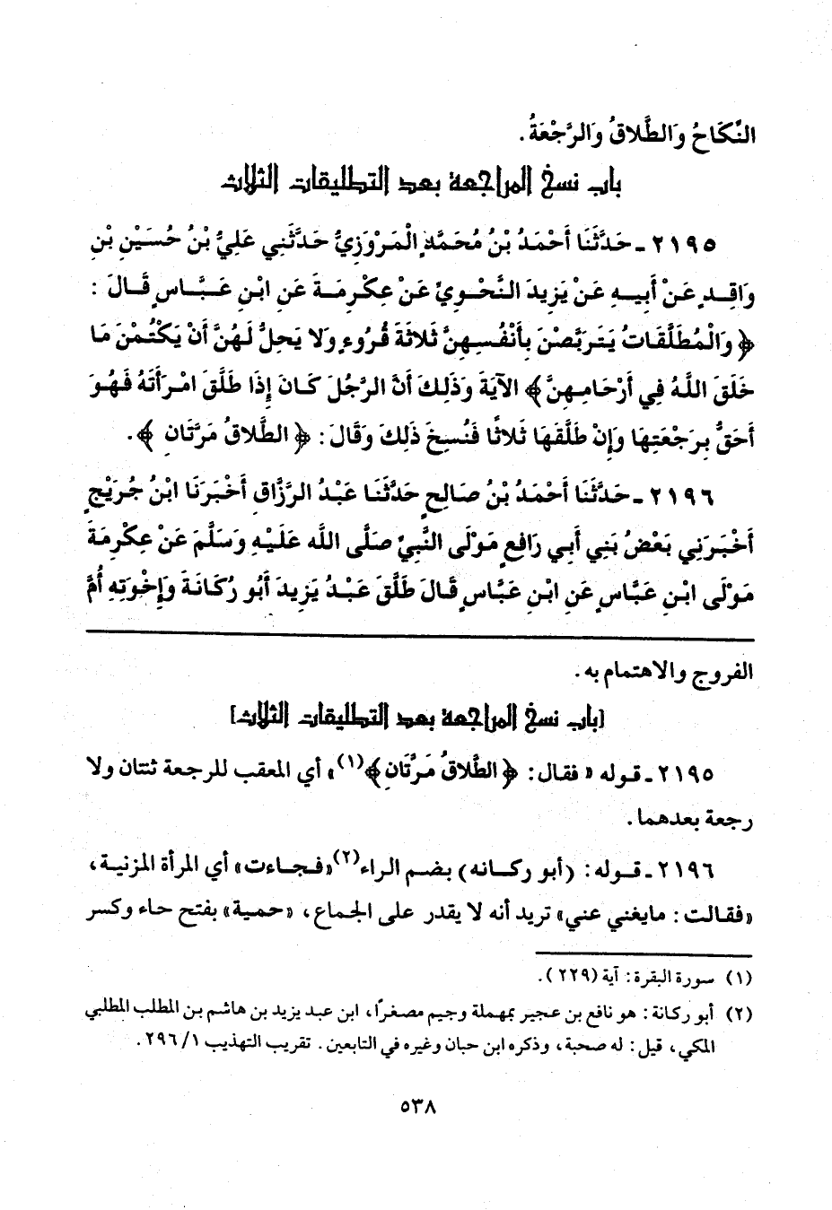 2195 - قوله "فقال: {الطَّلَاقُ مَرَّتَانِ} (¬1) " أي المعقب للرجعة ثنتان ولا رجعة بعدهما.