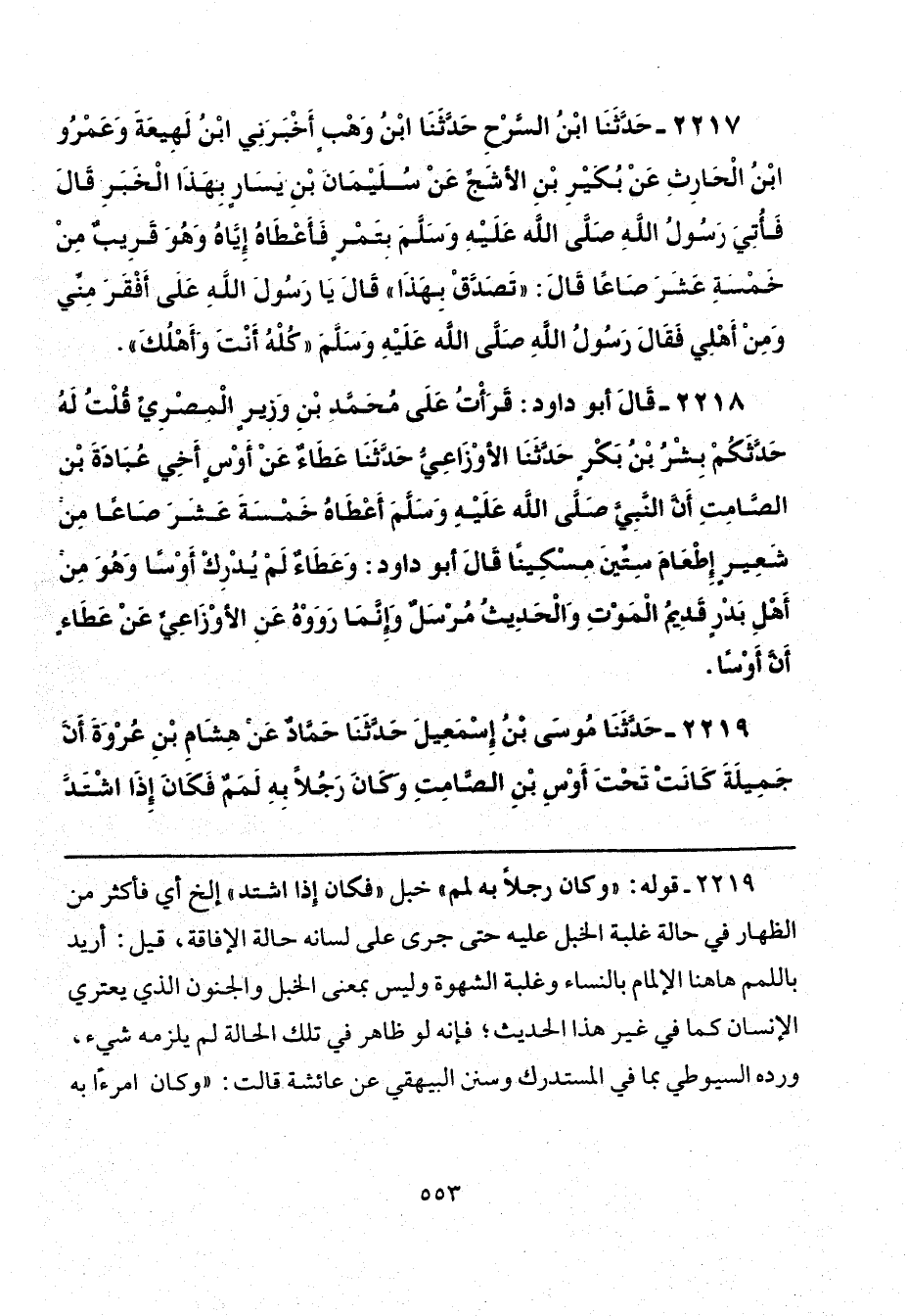 2219 - حَدَّثَنَا مُوسَى بْنُ إِسْمَاعِيلَ، حَدَّثَنَا حَمَّادٌ، عَنْ هِشَامِ بْنِ عُرْوَةَ، «أَنَّ جَمِيلَةَ كَانَتْ تَحْتَ أَوْسِ بْنِ الصَّامِتِ، وَكَانَ رَجُلًا بِهِ لَمَمٌ، فَكَانَ إِذَا اشْتَدَّ