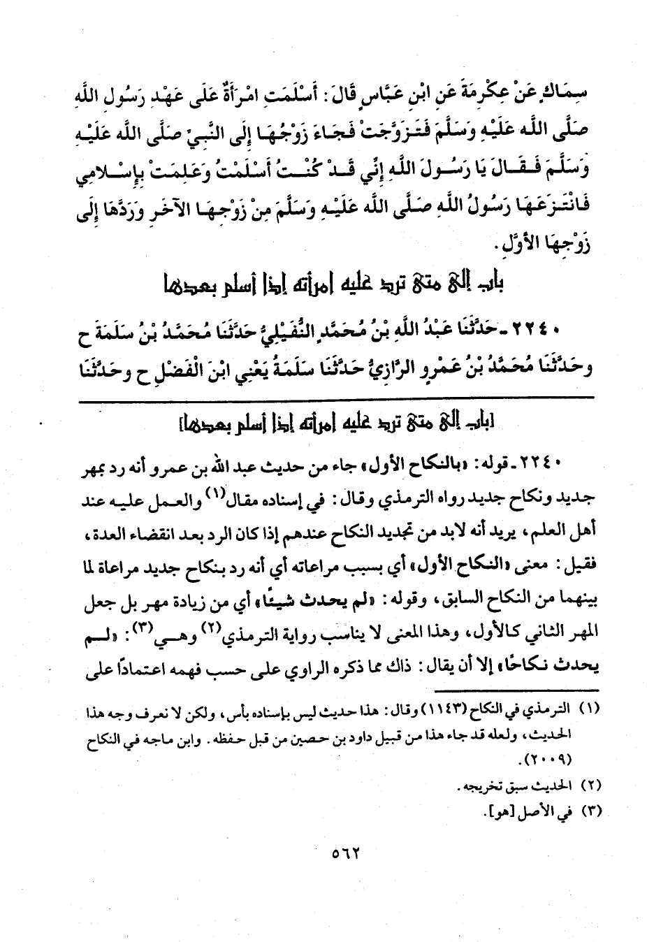 2240 - قوله: "بالنكاح الأول" جاء من حديث عبد الله بن عمرو أنه رد بمهر جديد ونكاح جديد رواه الترمذي وقال: في إسناده مقال (¬1) والعمل عليه عند أهل العلم، يريد أنه لا بد من تجديد النكاح عندهم إذا كان الرد بعد انقضاء العدة، فقيل: معنى "النكاح الأول" أي بسبب مراعاته أي أنه رد بنكاح جديد مراعاة لما بينهما من النكاح السابق، وقوله: "لم يحدث شيئًا" أي من زيادة مهر بل جعل المهر الثاني كالأول، وهذا المعنى لا يناسب رواية الترمذي (¬2) وهي (¬3): "لم يحدث نكاحًا، إلا أن يقال: ذاك مما ذكره الراوي على حسب فهمه اعتمادًا على