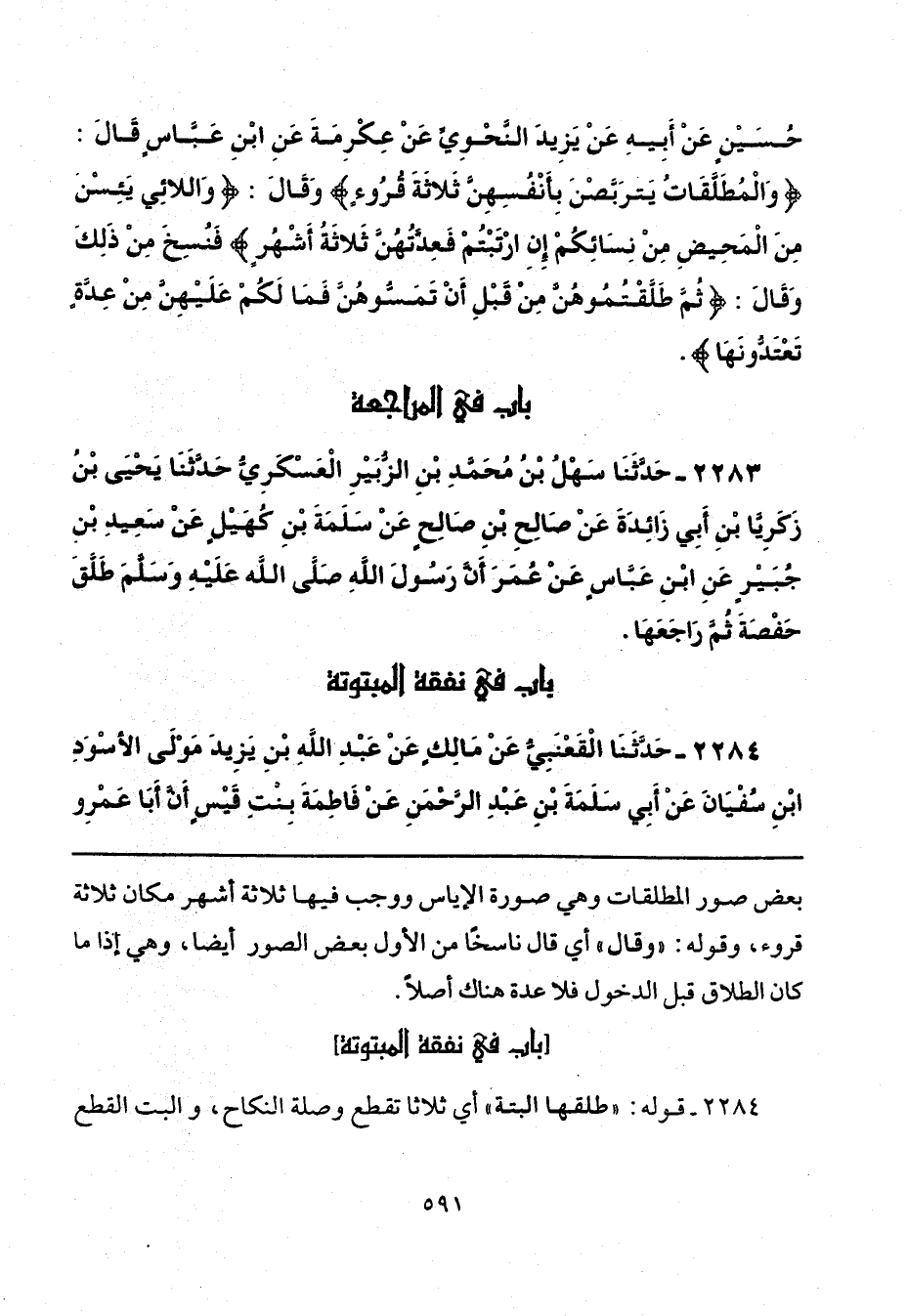 بَابٌ فِي نَفَقَةِ الْمَبْتُوتَةِ
