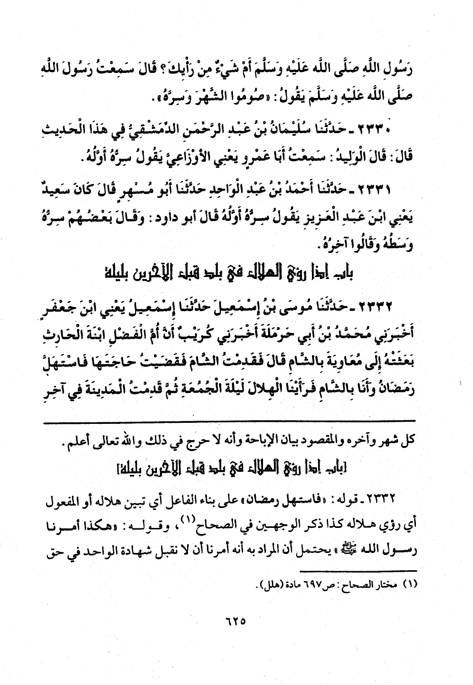 2332 - قوله: "فاستهل رمضان" على بناء الفاعل أي تبين هلاله أو المفعول أي رؤي هلاله كذا ذكر الوجهين في الصحاح (¬1)، وقوله: "هكذا أمرنا رسول الله - صلى الله عليه وسلم -" يحتمل أن المراد به أنه أمرنا أن لا نقبل شهادة الواحد في حق