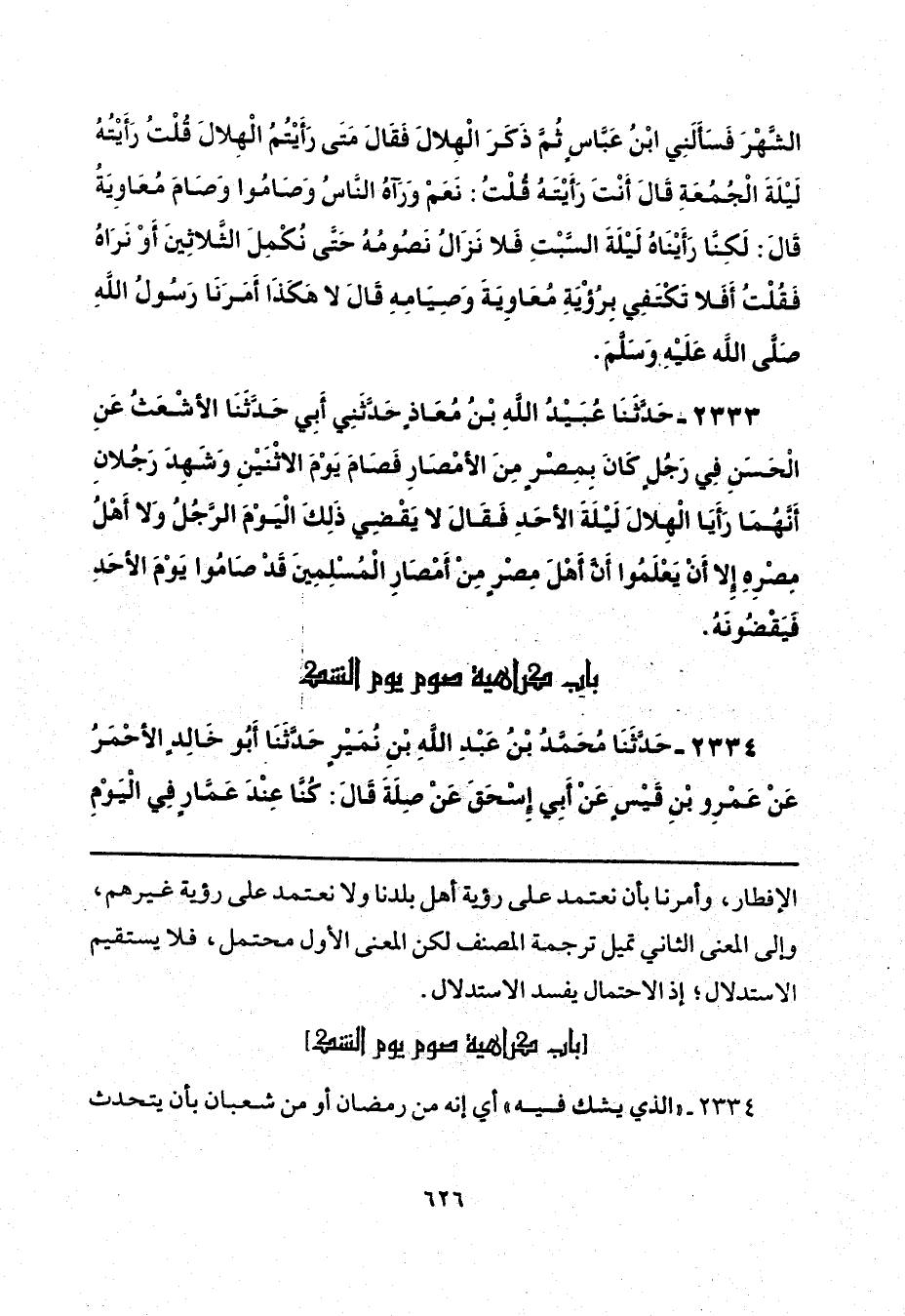 الإفطار، وأمرنا بأن نعتمد على رؤية أهل بلدنا ولا نعتمد على رؤية غيرهم، وإلى المعنى الثاني تميل ترجمة المصنف لكن المعنى الأول محتمل، فلا يستقيم الاستدلال؛ إذ الاحتمال يفسد الاستدلال.