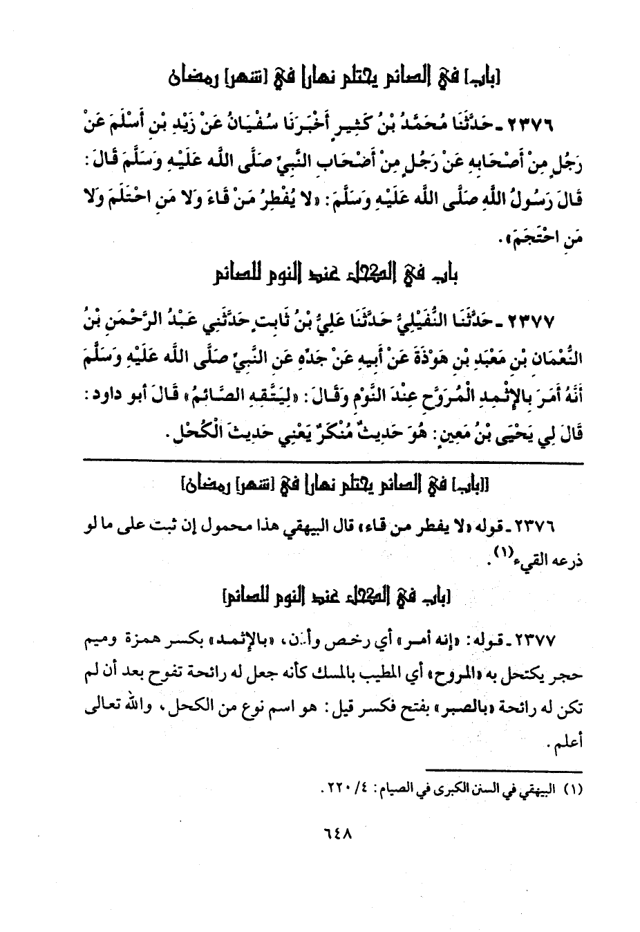 (¬1) البيهقي في السنن الكبرى في الصيام: 4/ 220.