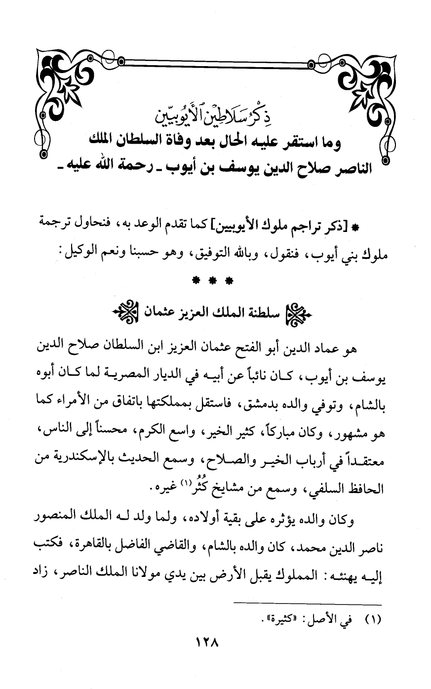 ذِكْرُ سَلَاطِينُ الأَيُّوبِيِّينَ وما استقر عليه الحال بعد وفاة السلطان الملك الناصر صلاح الدين يوسف بن أيوب - رحمة الله عليه -