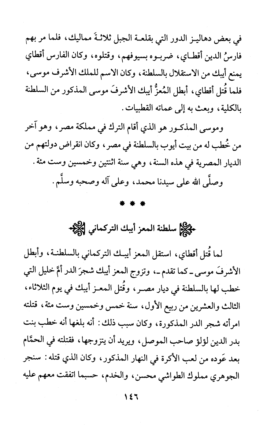 وموسى المذكور هو الذي أقام الترك في مملكة مصر، وهو آخر من خُطب له من بيت أيوب بالسلطنة في مصر، وكان انقراض دولتهم من الديار المصرية في هذه السنة، وهي سنة اثنتين وخمسين ولست مئة.