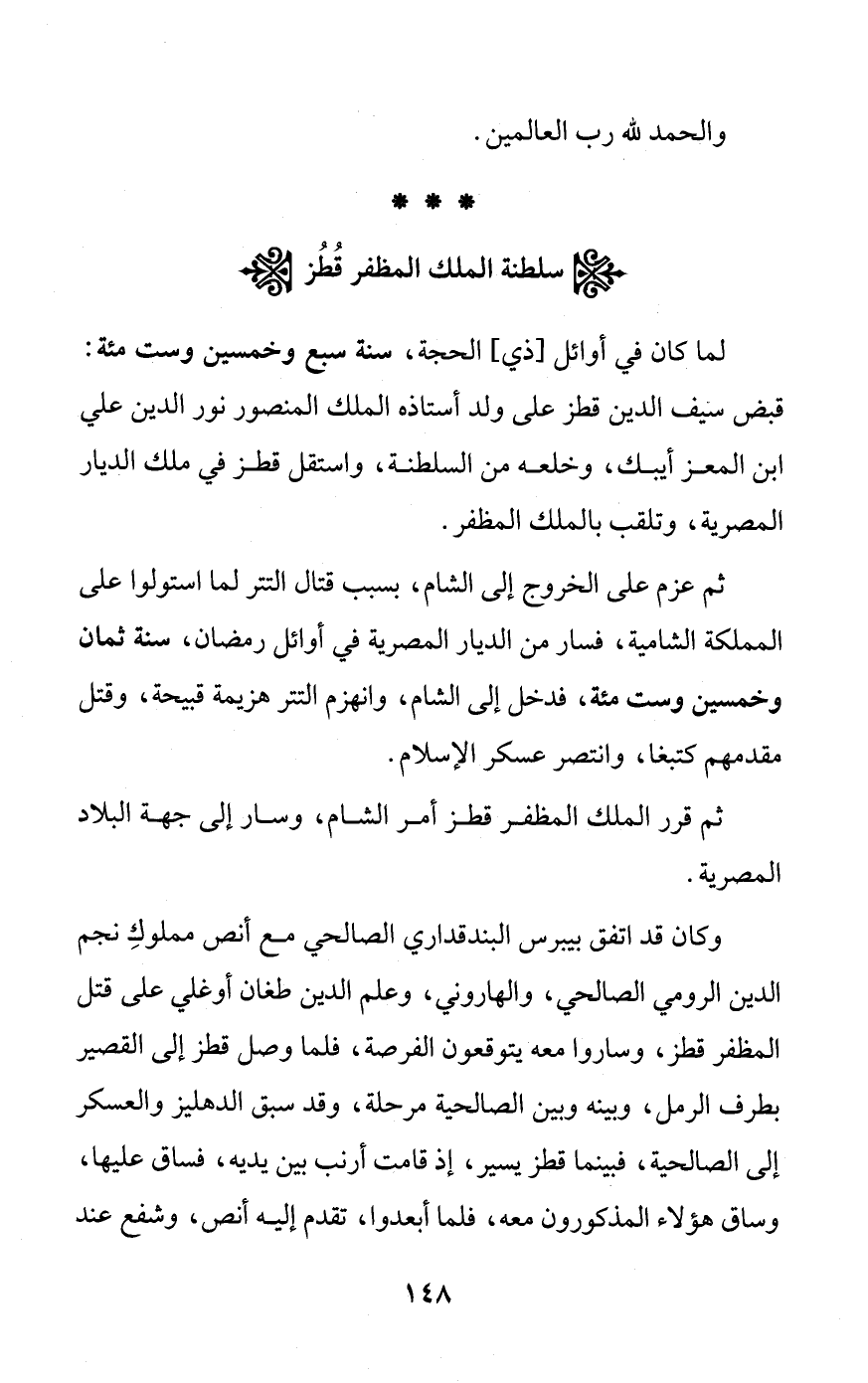 ثم قرر الملك المظفر قطز أمر الشام، وسار إلى جهة البلاد المصرية.