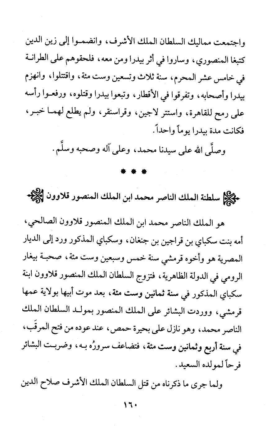 هو الملك الناصر محمد ابن الملك المنصور قلاوون الصالحي، أمه بنت سكباي بن قراجين بن جنغان، وسكباي المذكور ورد إلى الديار المصرية هو وأخوه قرمشي سنة خمس وسبعين وست مئة، صحبة بيغار الرومي في الدولة الظاهرية، فتزوج السلطان الملك المنصور قلاوون ابنة سكباي المذكور في سنة ثمانين وست مئة، بعد موت أبيها بولاية عمها قرمشي، ووردت البشائر على الملك المنصور بمولد السلطان الملك الناصر محمد، وهو نازل على بحيرة حمص، عند عوده من فتح المرقَب، في سنة أربع وثمانين وست مئة، فتضاعف سرورُه به، وضربت البشائر فرحًا لمولده السعيد.