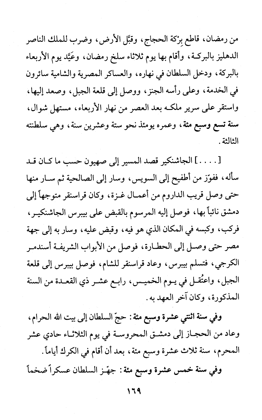 وفي سنة اثنتي عشرة وسبع مئة: حجّ السلطان إلى بيت الله الحرام، وعاد من الحجاز إلى دمشق المحروسة في يوم الثلاثاء حادي عشر المحرم، سنة ثلاث عشرة وسبع مئة، بعد أن أقام في الكرك أيامًا.
