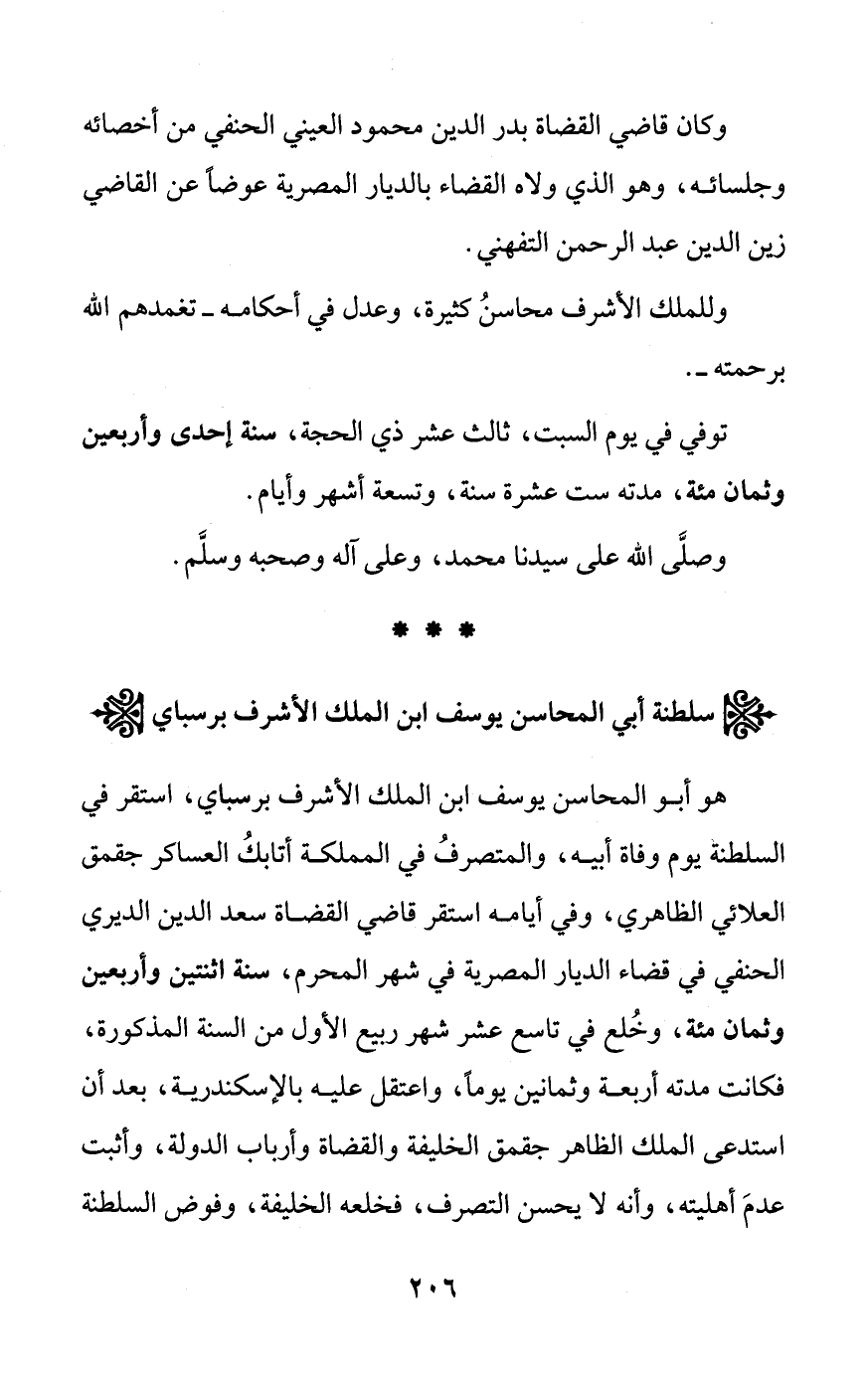 * سلطنة أبي المحاسن يوسف ابن الملك الأشرف برسباي *