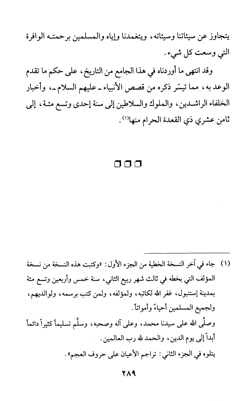 (¬1) جاء في آخر النسخة الخطية من الجزء الأول: "وكتبت هذه النسخة من نسخة المؤلف التي بخطه في ثالث شهر ربيع الثاني، سنة خمس وأربعين وتسع مئة بمدينة إستنبول، غفر الله لكاتبه، ولمؤلفه، ولمن كتب برسمه، ولوالديهم، ولجميع المسلمين أحياءً وأمواتًا.