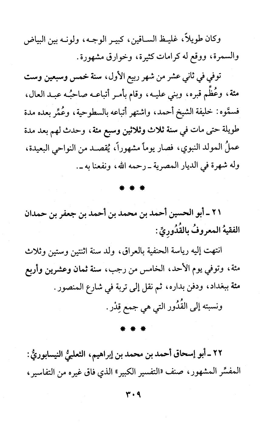 21 - أبو الحسين أحمد بن محمد بن أحمد بن جعفر بن حمدان الفقيهُ المعروفُ بالقُدُورِيِّ: