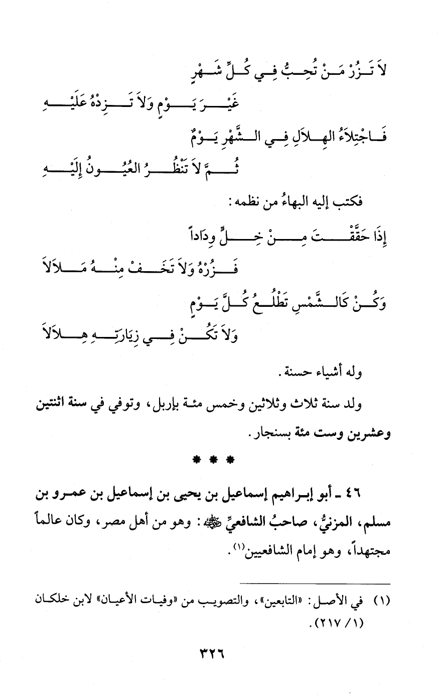 وَكُنْ كَالشَّمْسِ تَطْلُعُ كُلَّ يَوْمِ ... وَلاَ تَكُنْ في زِيارتهِ هِلاَلاَ