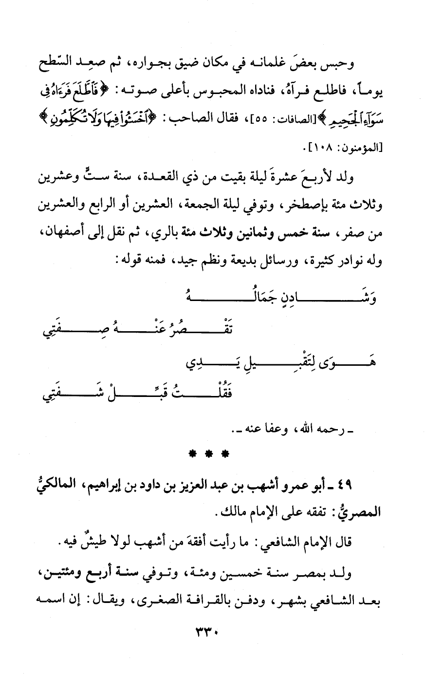 49 - أبو عمرو أشهب بن عبد العزيز بن داود بن إبراهيم، المالكيّ المصريّ: تفقه على الإِمام مالك.