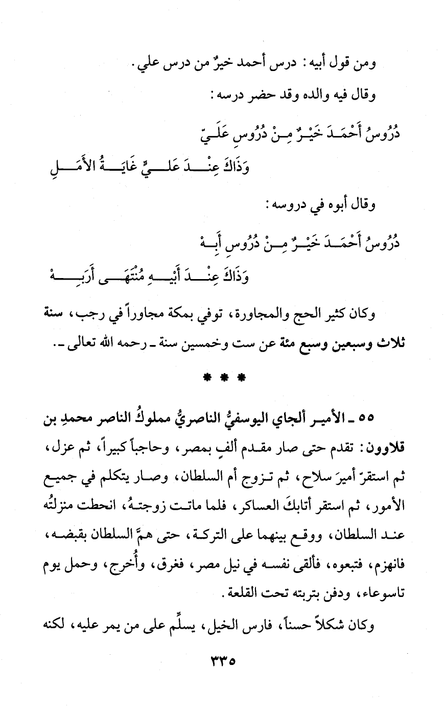 دُرُوسُ أَحْمَدَ خَيْرٌ مِنْ دُرُوسِ أَبِهْ ... وَذَاكَ عِنْدَ أَبْيهِ مُنْتَهَى أَرَبِه