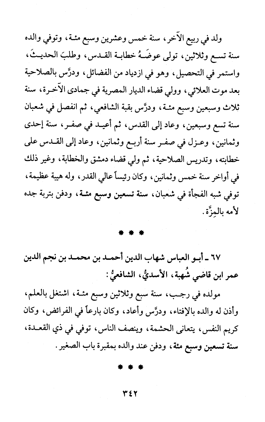 67 - أبو العباس شهاب الدين أحمد بن محمَّد بن نجم الدين عمر ابن قاضي شُهبة، الأسديّ، الشافعيّ:
