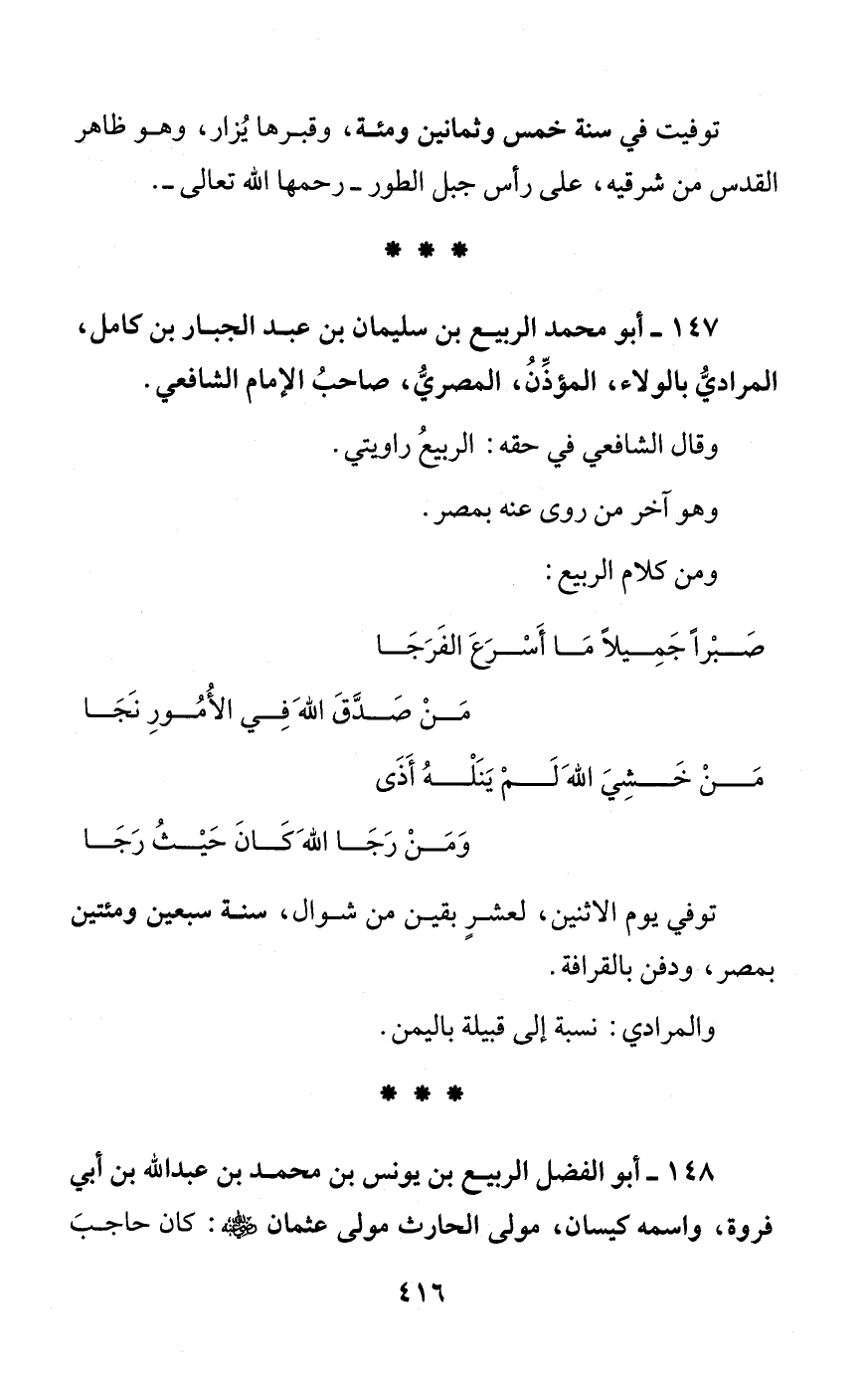 147 - أبو محمد الربيع بن سليمان بن عبد الجبار بن كامل، المراديُّ بالولاء، المؤذِّنُ، المصريُّ، صاحبُ الإمام الشافعي.