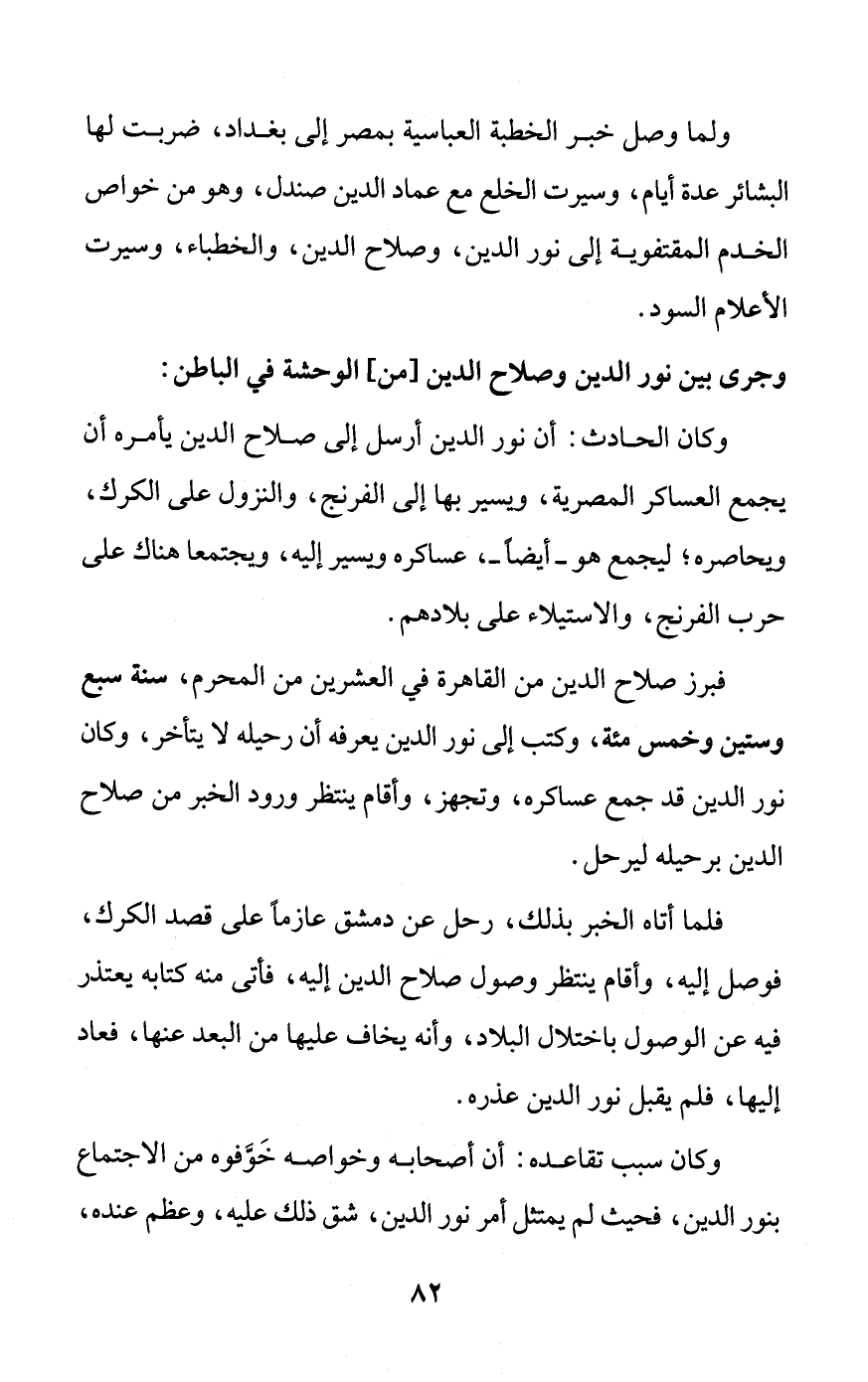وكان الحادث: أن نور الدين أرسل إلى صلاح الدين يأمره أن يجمع العساكر المصرية، ويسير بها إلى الفرنج، والنزول على الكرك، ويحاصره؛ ليجمع هو - أيضًا -، عساكره ويسير إليه، ويجتمعا هناك على حرب الفرنج، والاستيلاء على بلادهم.