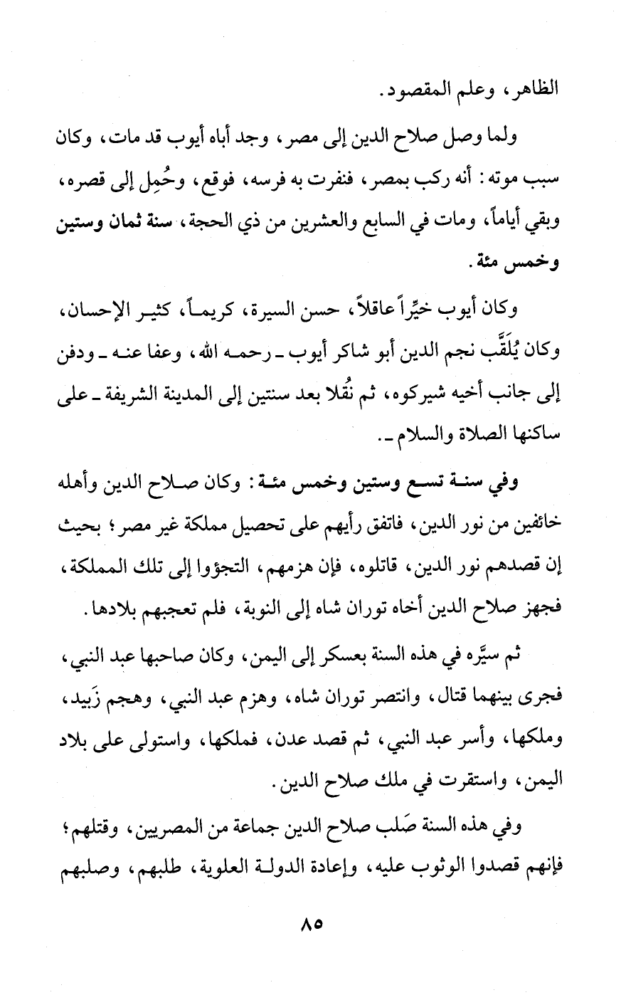 ولما وصل صلاح الدين إلى مصر، وجد أباه أيوب قد مات، وكان سبب موته: أنه ركب بمصر، فنفرت به فرسه، فوقع، وحُمِل إلى قصره، وبقي أياماً، ومات في السابع والعشرين من ذي الحجة، سنة ثمان وستين وخمس مئة.