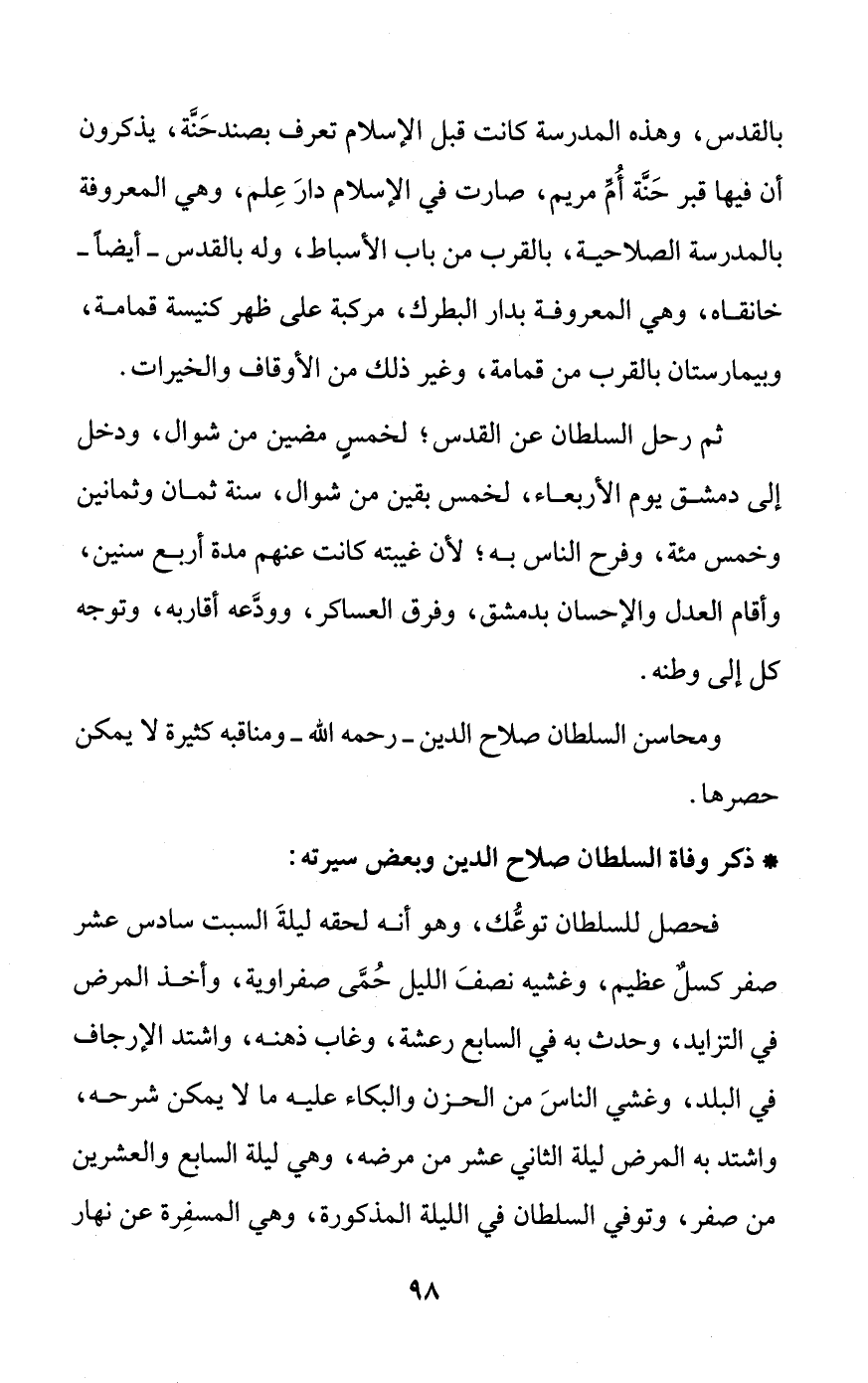 ومحاسن السلطان صلاح الدين - رحمه الله - ومناقبه كثيرة لا يمكن حصرها.