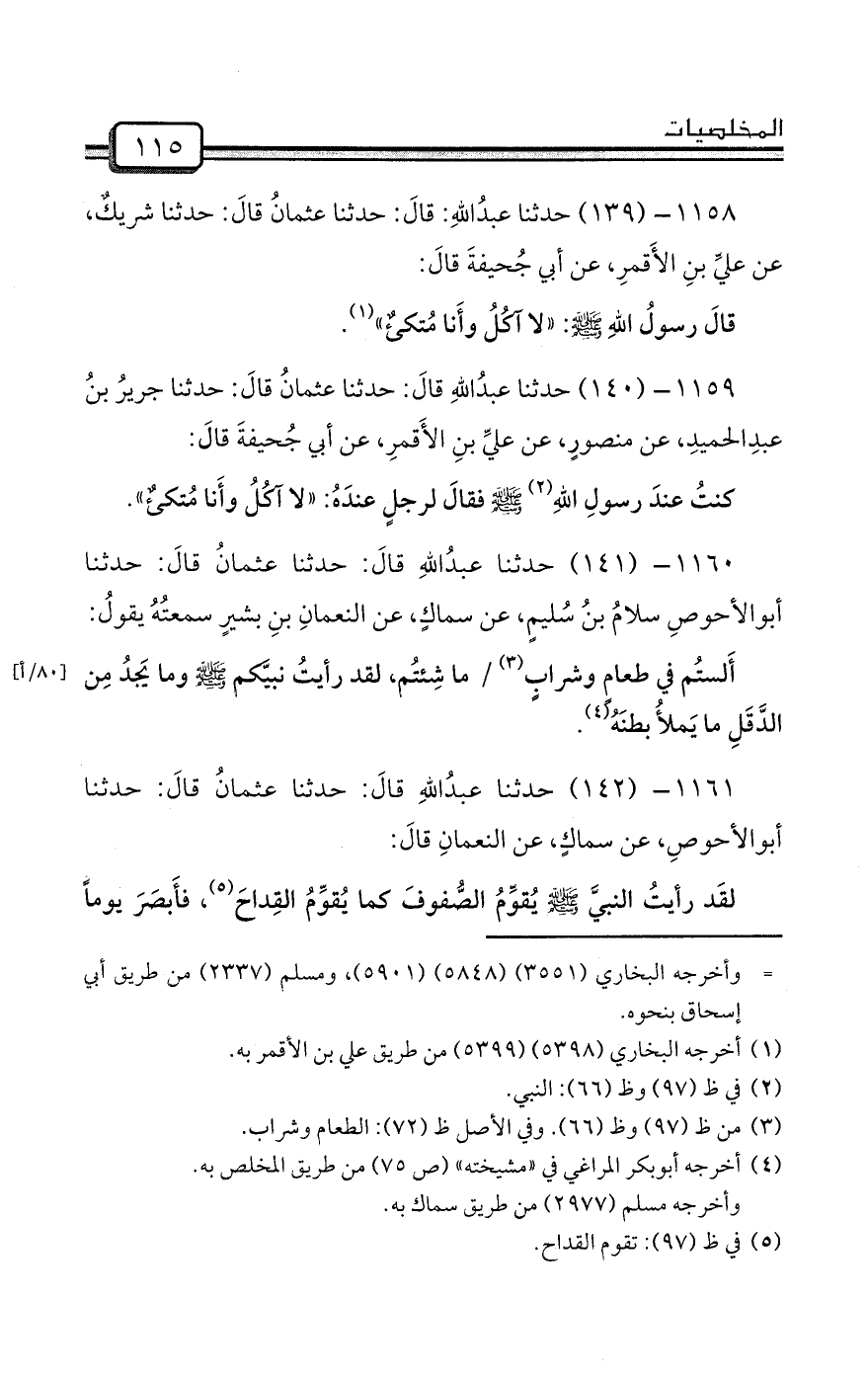 1160- (141) حدثنا عبدُاللهِ قالَ: حدثنا عثمانُ قالَ: حدثنا أبوالأحوصِ سلامُ بنُ سُليمٍ، عن سماكٍ، عن النعمانِ بنِ بشيرٍ سمعتُهُ يقولُ: