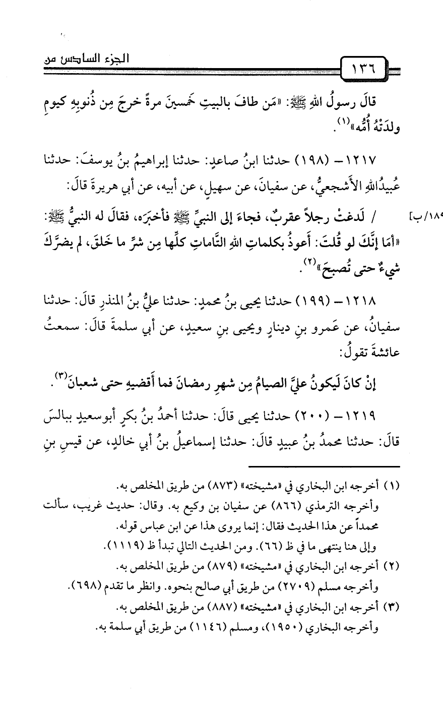1217- (198) حدثنا ابنُ صاعدٍ: حدثنا إبراهيمُ بنُ يوسفَ: حدثنا عُبيدُاللهِ الأَشجعيُّ، عن سفيانَ، عن سهيلٍ، عن أبيه، عن أبي هريرةَ قالَ: