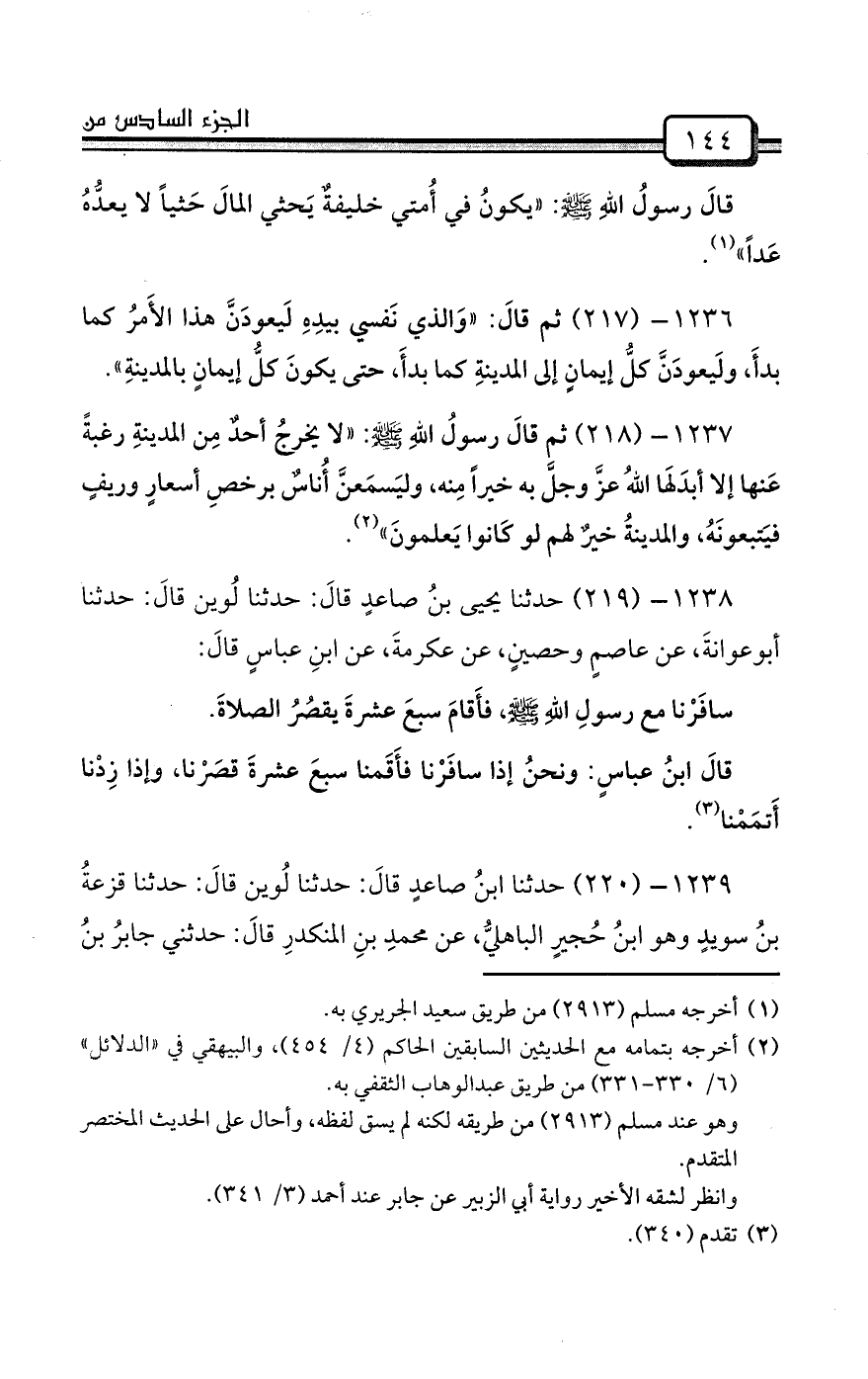 1236- (217) ثم قالَ: «وَالذي نَفسي بيدِهِ لَيعودَنَّ هذا الأَمرُ كما بدأَ، ولَيعودَنَّ كلُّ إيمانٍ إلى المدينةِ كما بدأَ، حتى يكونَ كلُّ إيمانٍ بالمدينةِ» .