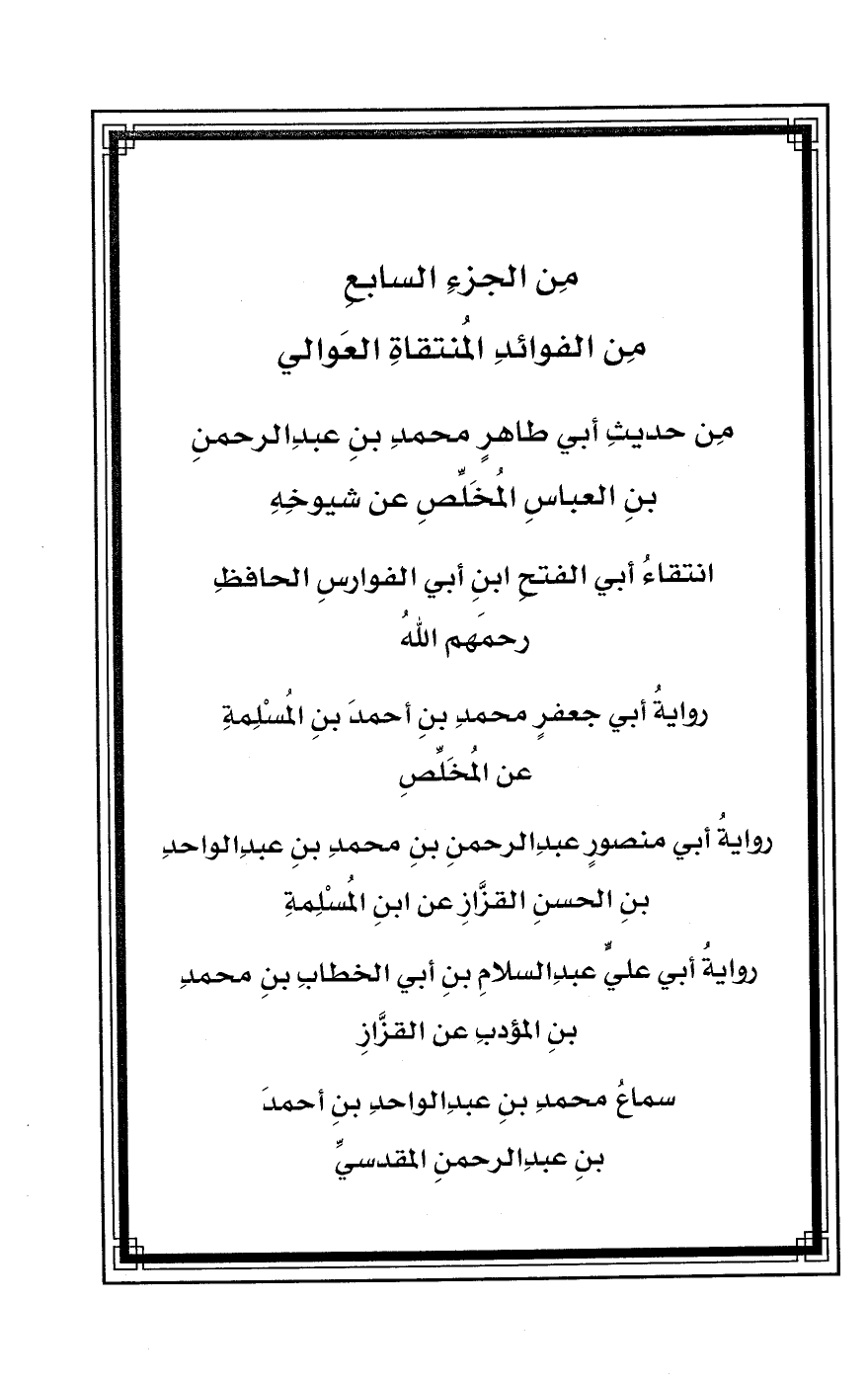 روايةُ أبي منصورٍ عبدِالرحمنِ بنِ محمدِ بنِ عبدِالواحدِ بنِ الحسنِ القزَّازِ عن ابنِ المُسْلِمةِ