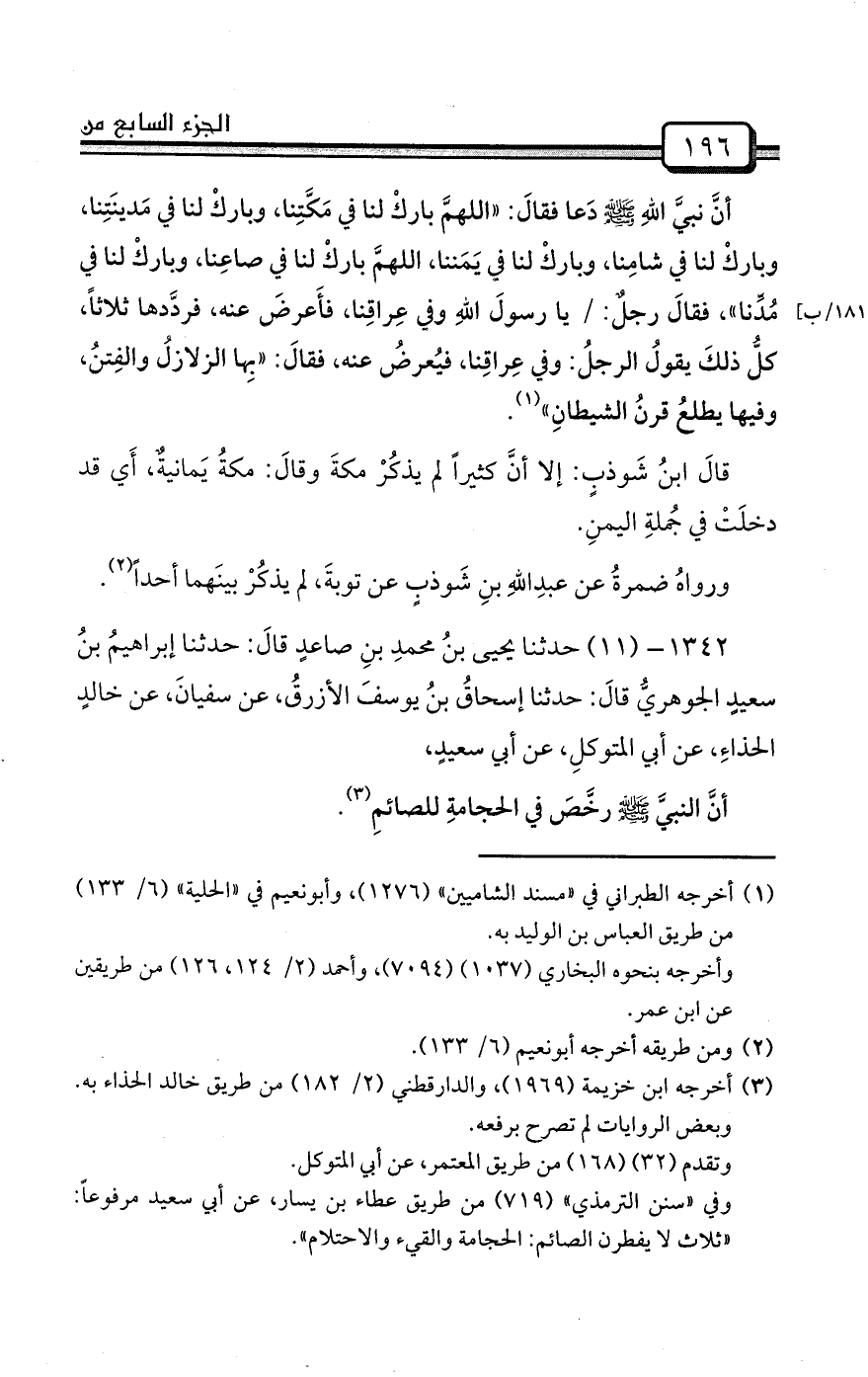 1342- (11) حدثنا يحيى بنُ محمدِ بنِ صاعدٍ قالَ: حدثنا إبراهيمُ بنُ سعيدٍ الجوهريُّ قالَ: حدثنا إسحاقُ بنُ يوسفَ الأزرقُ، عن سفيانَ، عن خالدٍ الحذاءِ، عن أبي المتوكلِ، عن أبي سعيدٍ،