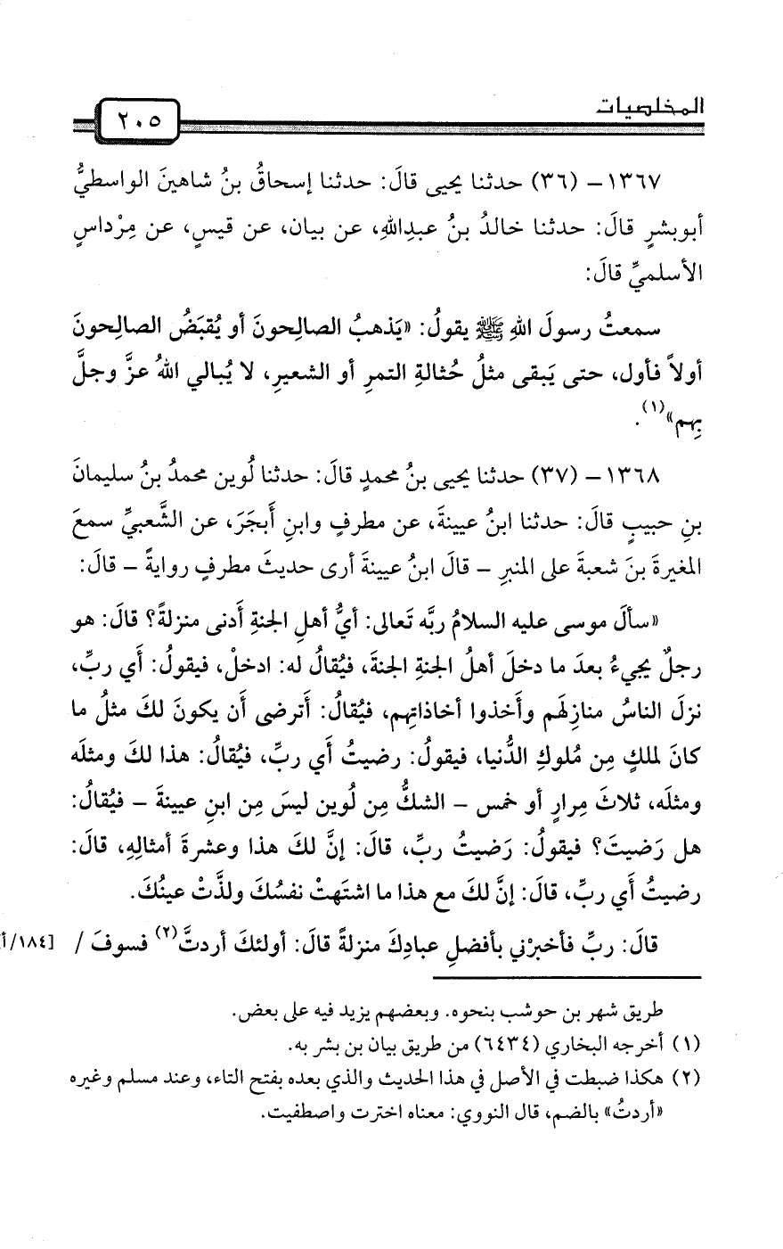 1367- (36) حدثنا يحيى قالَ: حدثنا إسحاقُ بنُ شاهينَ الواسطيُّ أبوبشرٍ قالَ: حدثنا خالدُ بنُ عبدِاللهِ، عن بيان، عن قيسٍ، عن مِرْداسٍ الأسلميِّ قالَ: