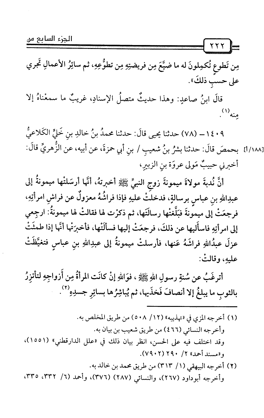 وأخرجه أبوداود (267) ، والنسائي (287) (376) ، وأحمد (6/ 332، 335، 336) ، وابن حبان (1365) ، والطبراني 20/ (16) إلى (21) من طريق الزهري مطولاً ومختصراً على اختلاف في إسناده إلى مولاة ميمونة.