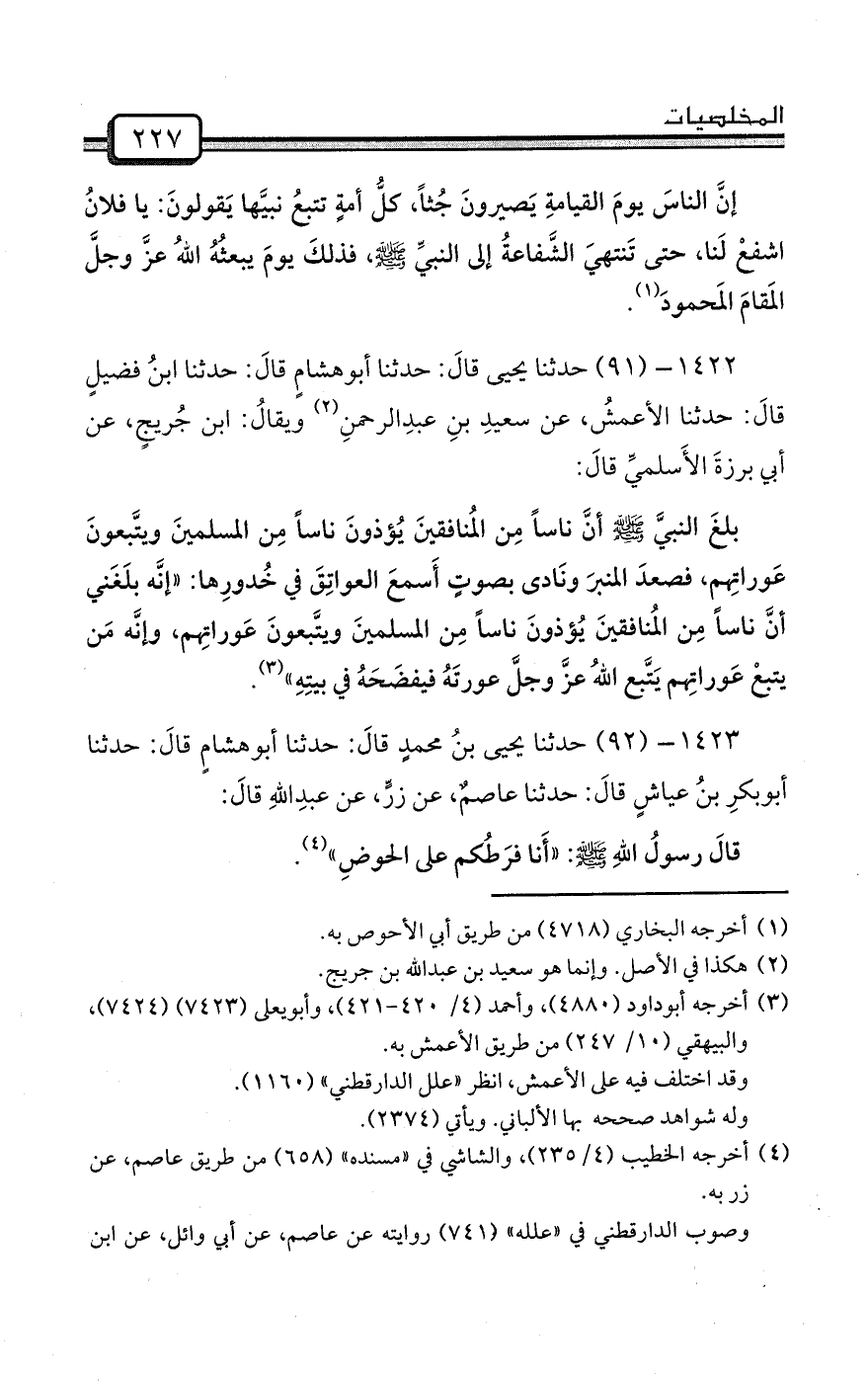 1423- (92) حدثنا يحيى بنُ محمدٍ قالَ: حدثنا أبوهشامٍ قالَ: حدثنا أبوبكرِ بنُ عياشٍ قالَ: حدثنا عاصمٌ، عن زرٍّ، عن عبدِاللهِ قالَ:
