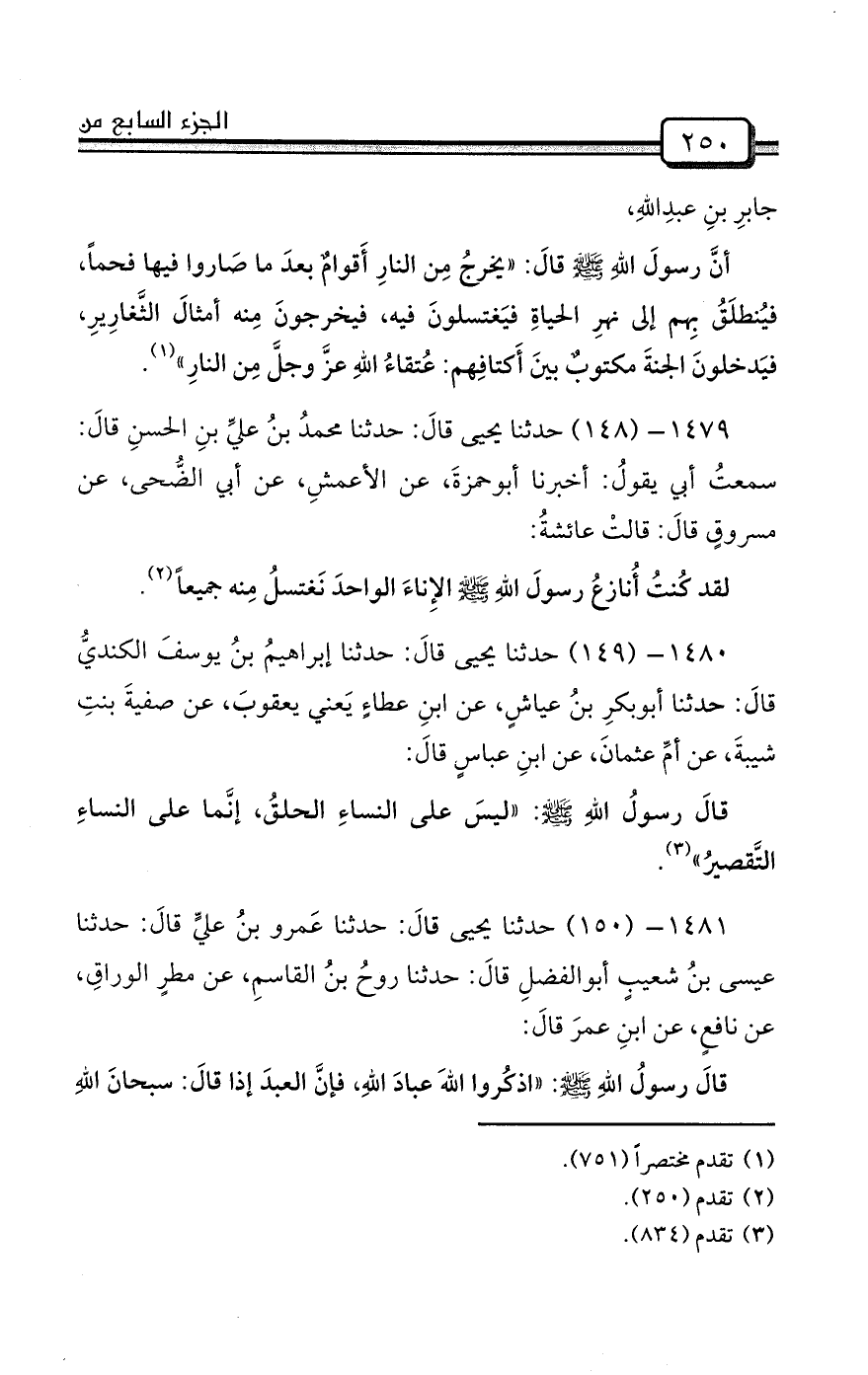 1481- (150) حدثنا يحيى قالَ: حدثنا عَمرو بنُ عليٍّ قالَ: حدثنا عيسى بنُ شعيبٍ أبوالفضلِ قالَ: حدثنا روحُ بنُ القاسمِ، عن مطرٍ الوراقِ، عن نافعٍ، عن ابنِ عمرَ قالَ: