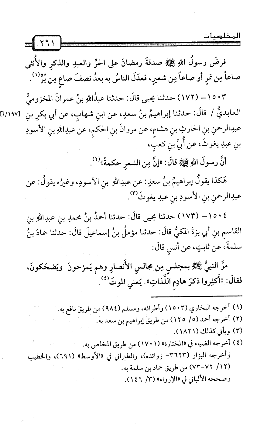 1504- (173) حدثنا يحيى قالَ: حدثنا أحمدُ بنُ محمدِ بنِ عبدِاللهِ بنِ القاسمِ بنِ أبي بزةَ المكيُّ قالَ: حدثنا مؤملُ بنُ إسماعيلَ قالَ: حدثنا حمادُ بنُ سلمةَ، عن ثابتٍ، عن أنسٍ قالَ: