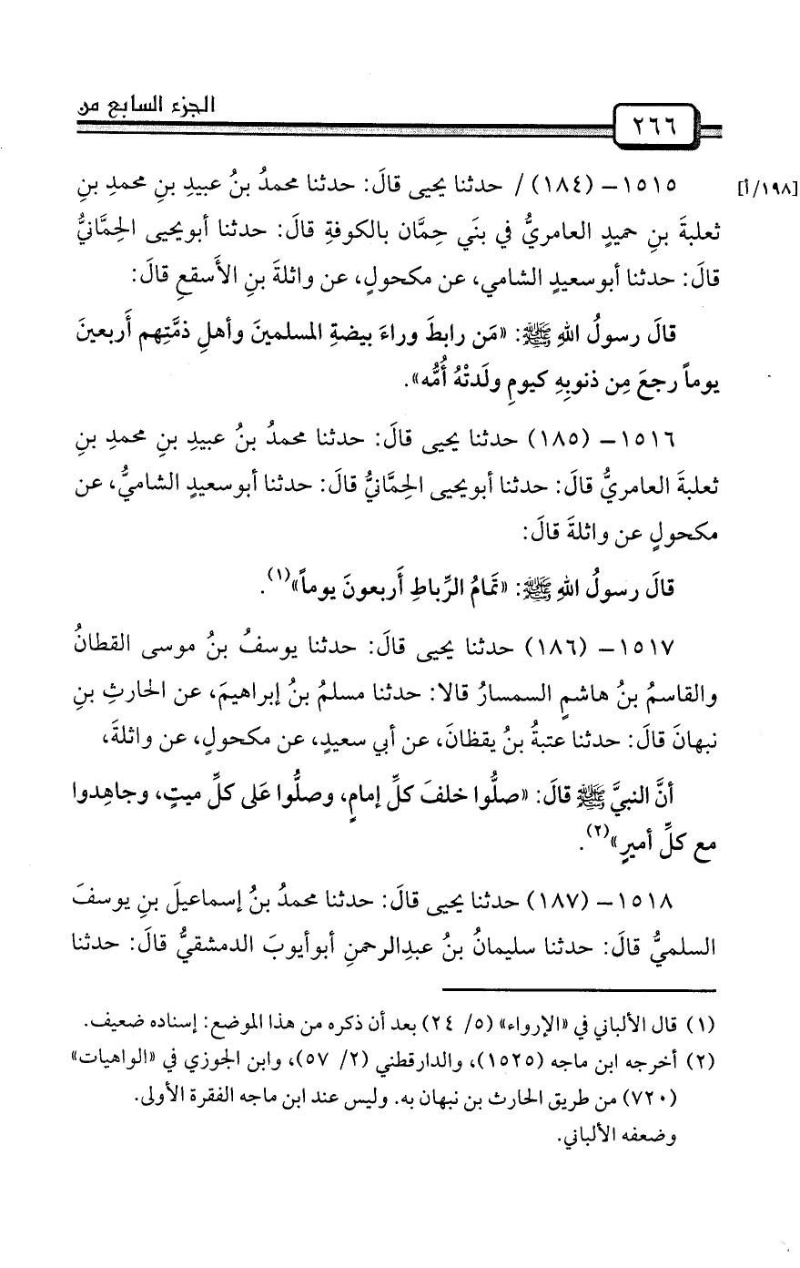 1518- (187) حدثنا يحيى قالَ: حدثنا محمدُ بنُ إسماعيلَ بنِ يوسفَ السلميُّ قالَ: حدثنا سليمانُ بنُ عبدِالرحمنِ أبوأيوبَ الدمشقيُّ قالَ: حدثنا