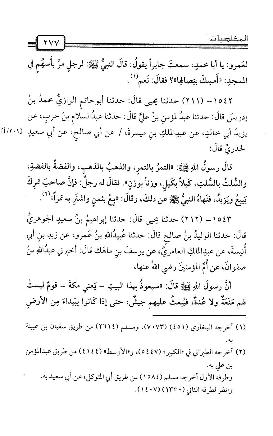 1542- (211) حدثنا يحيى قالَ: حدثنا أبوحاتمٍ الرازيُّ محمدُ بنُ إدريسَ قالَ: حدثنا عبدُالمؤمنِ بنُ عليٍّ قالَ: حدثنا عبدُالسلامِ بنُ حربٍ، عن يزيدَ أبي خالدٍ، عن عبدِالملكِ بنِ ميسرةَ، / عن أبي صالحٍ، عن أبي سعيدٍ الخدريِّ قالَ: