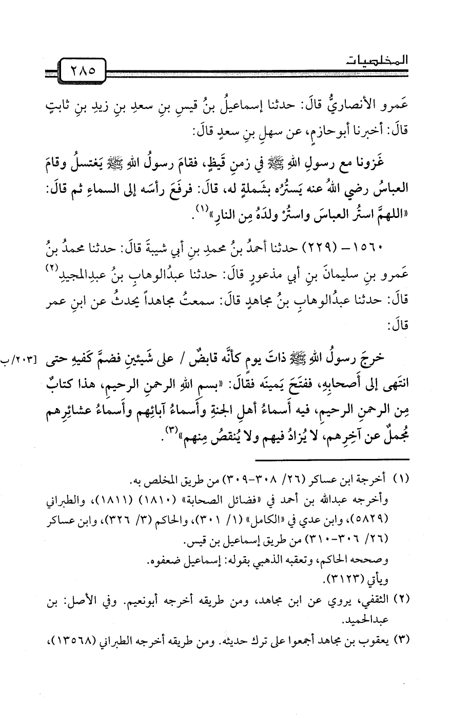 (¬1) أخرجة ابن عساكر (26/ 308-309) من طريق المخلص به.