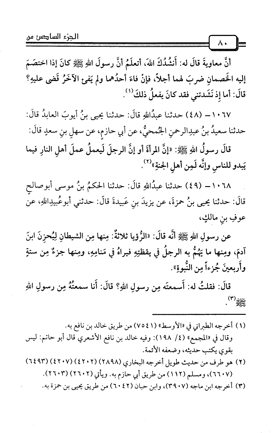 1068- (49) حدثنا عبدُاللهِ قالَ: حدثنا الحكمُ بنُ موسى أبوصالحٍ قالَ: حدثنا يحيى بنُ حمزةَ، عن يزيدَ بنِ عَبيدةَ قالَ: حدثني أبوعُبيدِاللهِ، عن عوفِ بنِ مالكٍ،