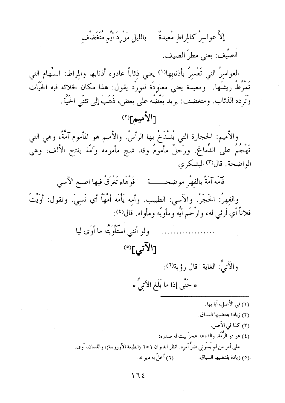والفِهرُ: الحجرُ. والآٍي: الطبيب. وأمِه يَامَه أمْهَاً أي نسي. وتقول: أوَيْتُ فلاناً أي أرثي له، وارحم أيَّه ومأويّه ومأواه. قال: