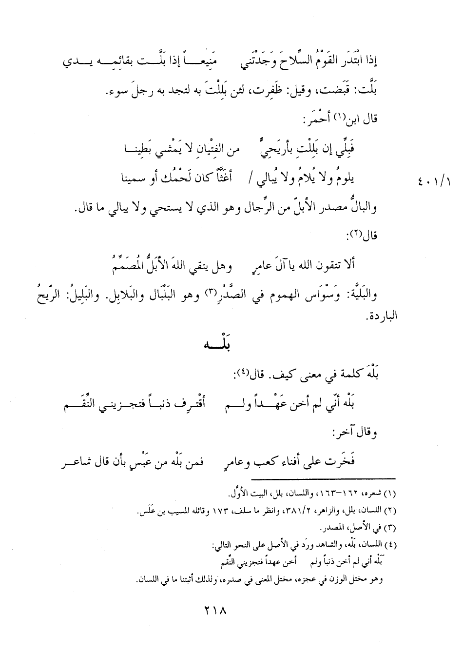 فخرت على أفناء كعب وعامرٍ ... فمن بله من عبس بأن قال شاعر