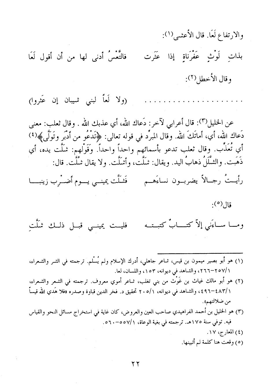 عن الخليل: قال أعرابي لآخر: دعاك الله، أي عذبك الله. وقال ثعلب: معنى دعاك الله، أماتك الله. وقال المبرد في قوله تعالى: {تَدْعُوا مَنْ أَدْبَرَ وَتَوَلَّى} أي تُعَذِّب. وقال ثعلب تدعو بأسمائهم واحداً واحداً. وقولهم: شَلَّت يده، أي ذهبت. والشلل ذهابُ اليد. ويقال: شَلَّت، وأشَلَّت، ولا يقال شُلَّت. قال:
