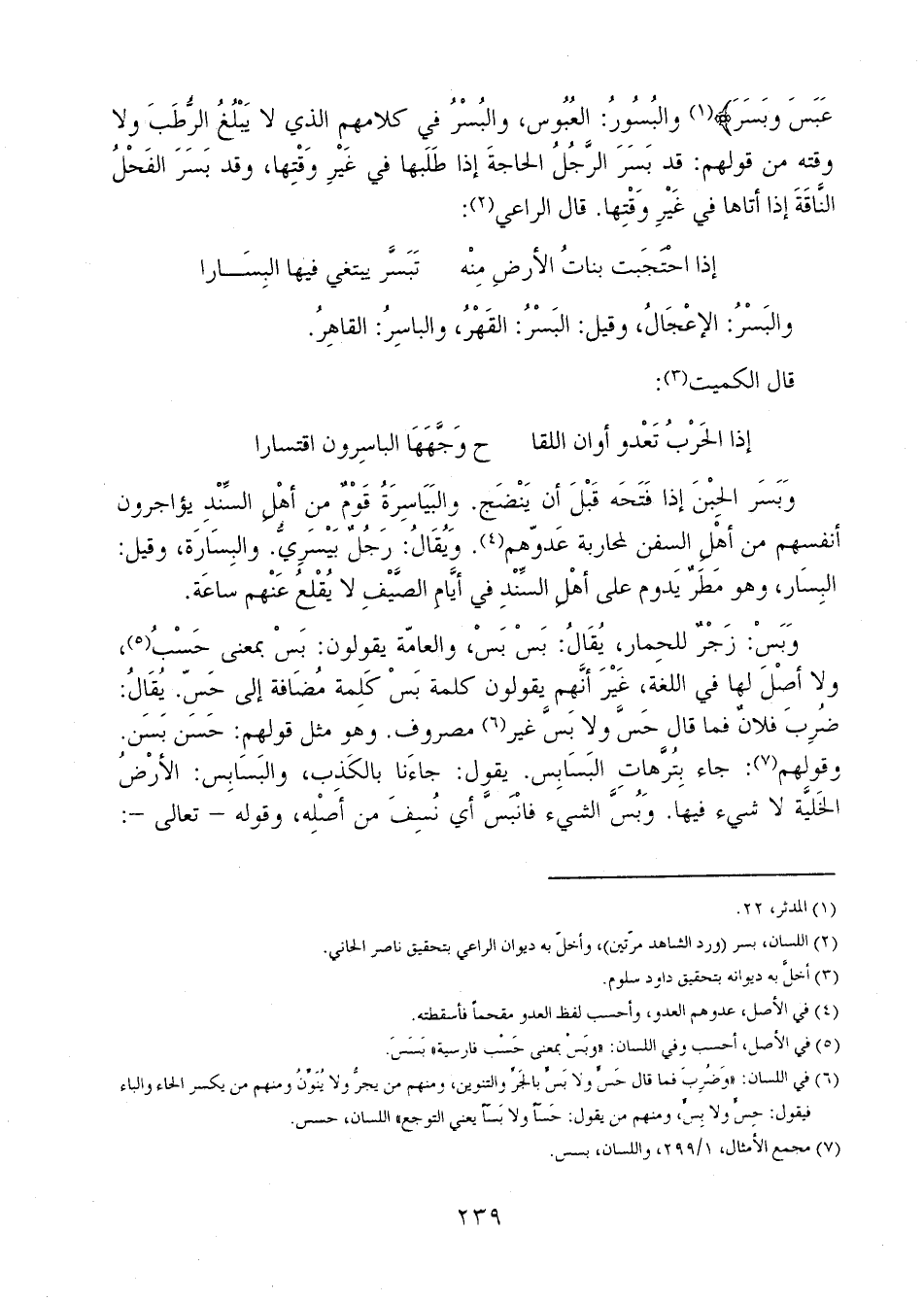 عَبَسَ وَبَسَرَ} والبسور: العبوس، والبُسرُ في كلامهم الذي لا يبلغُ الرطب ولا وقته من قولهم: قد بسر الرجل الحاجة إذا طلبها في غير وقتها، وقد بسر الفحل الناقة إذا أتاها في غير وقتها. قال الراعي: