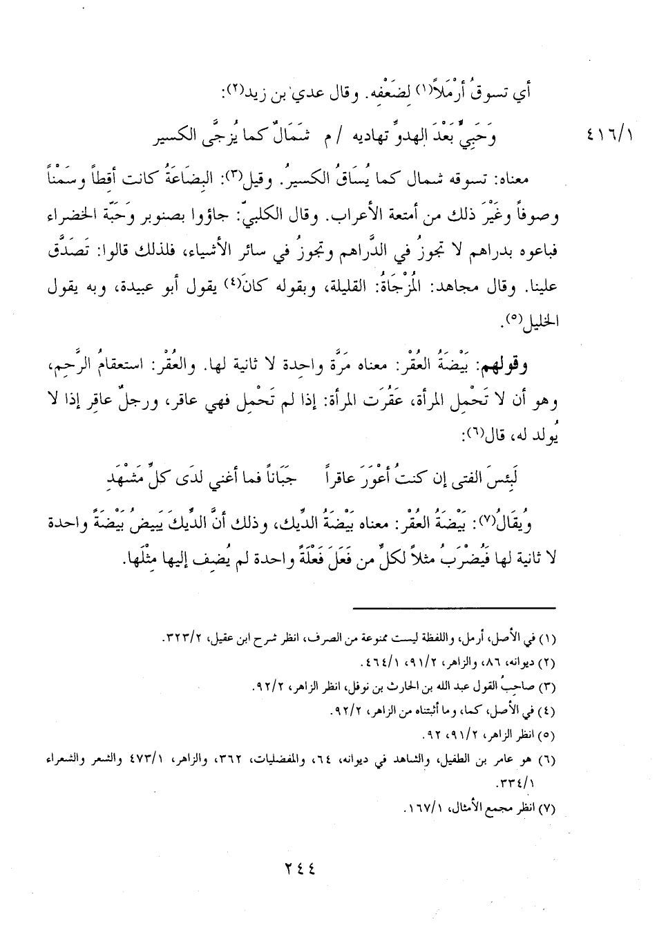 وحبي بعد الهدو تهاديه 1/ 416 م شمالٌ كما يُزجى الكسير