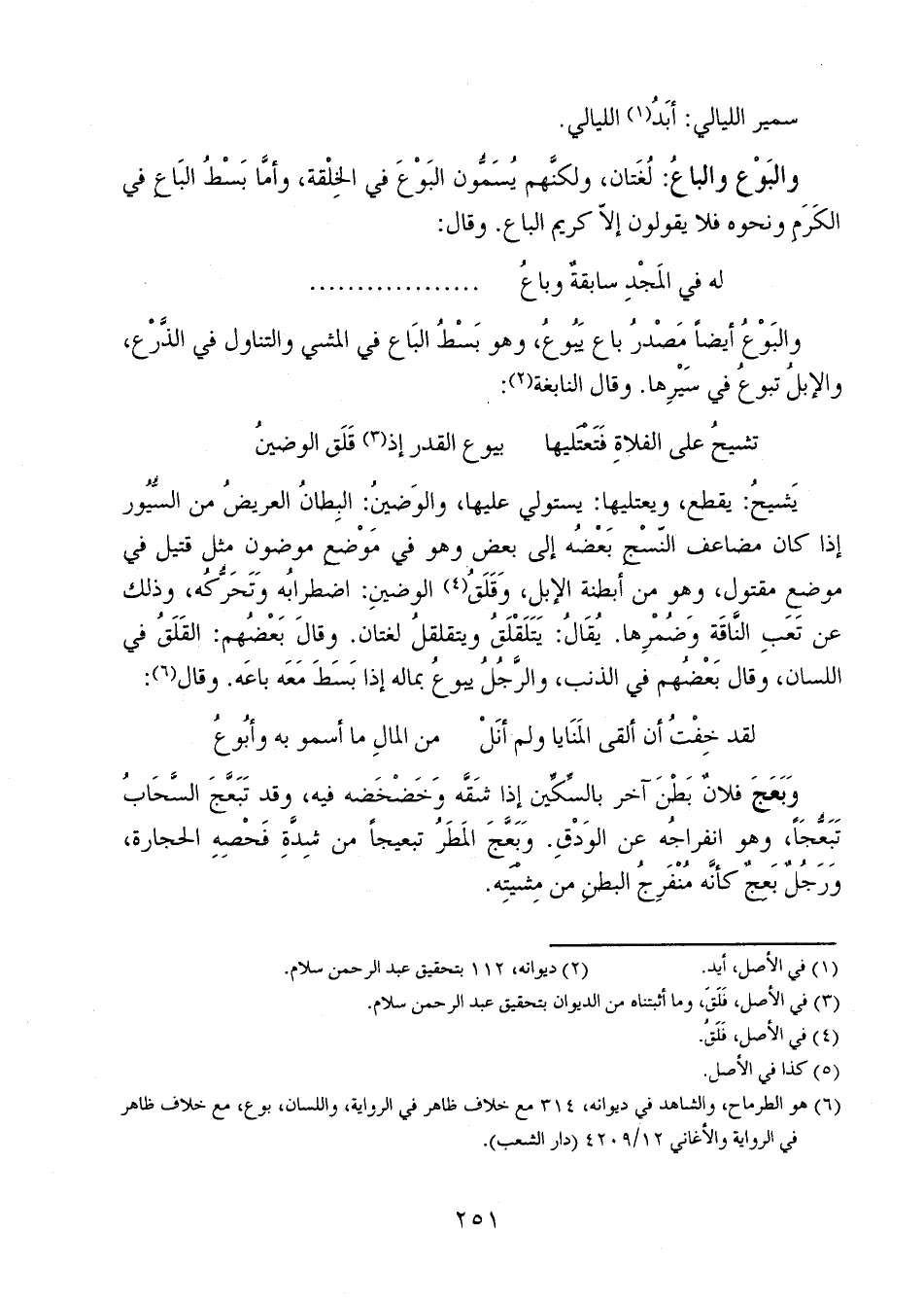 يشيحُ: يقطع، ويعتليها: يستولي عليها، والوضين: البطانُ العريضُ من السيور إذا كان مضاعف النسج بعضه إلى بعض وهو في موضع موضون مثل قتيل في موضع مقتول، وهو من أبطنة الإبل، وقلق الوضين: اضطرابه وتحركه، وذلك عن تعب الناقة وضمرها. يقال: يتلقلق ويتقلقل لغتان. وقال بعضهم: القلق في اللسان، وقال بعضهم في الذنب، والرجلُ بيوع بماله إذا بسط معه باعه. وقال: