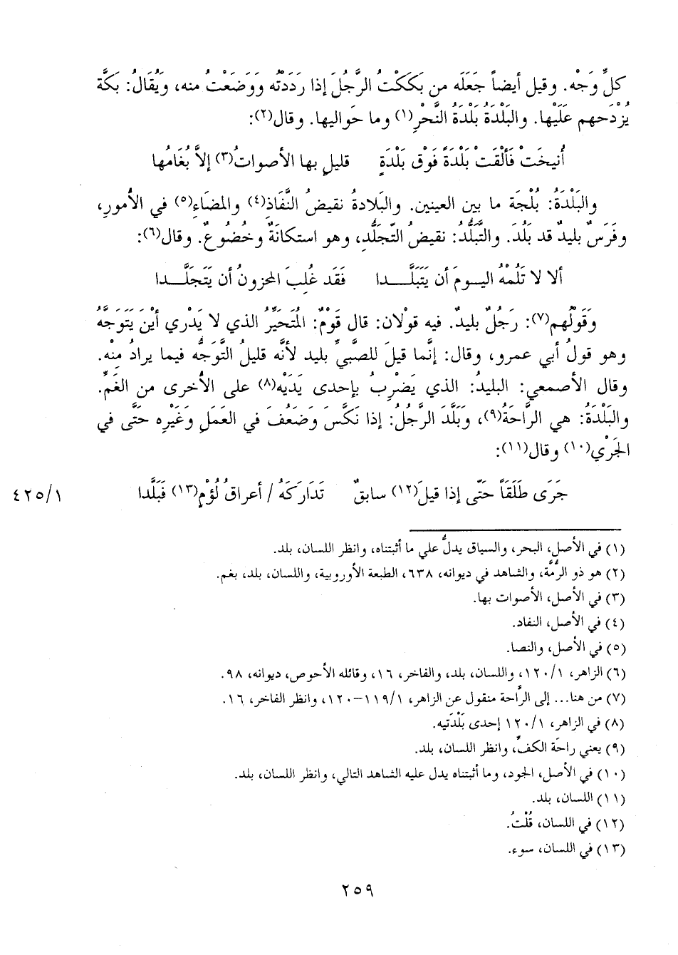 وقولهم: رجل بليد. فيه قولان: قال قوم: المتحير الذي لا يدري أين يتوجه وهو قول أبي عمرو، وقال: إنما قيل للصبي بليد لأنه قليل التوجه فيماي راد منه. وقال الأصمعي: البليدُ: الذي يضرب بإحدى يديه على الأخرى من الغم. والبلدة: هي الراحة، وبلد الرجل: إذا نكس وضعف في العمل وغيره حتى في الجري وقال: